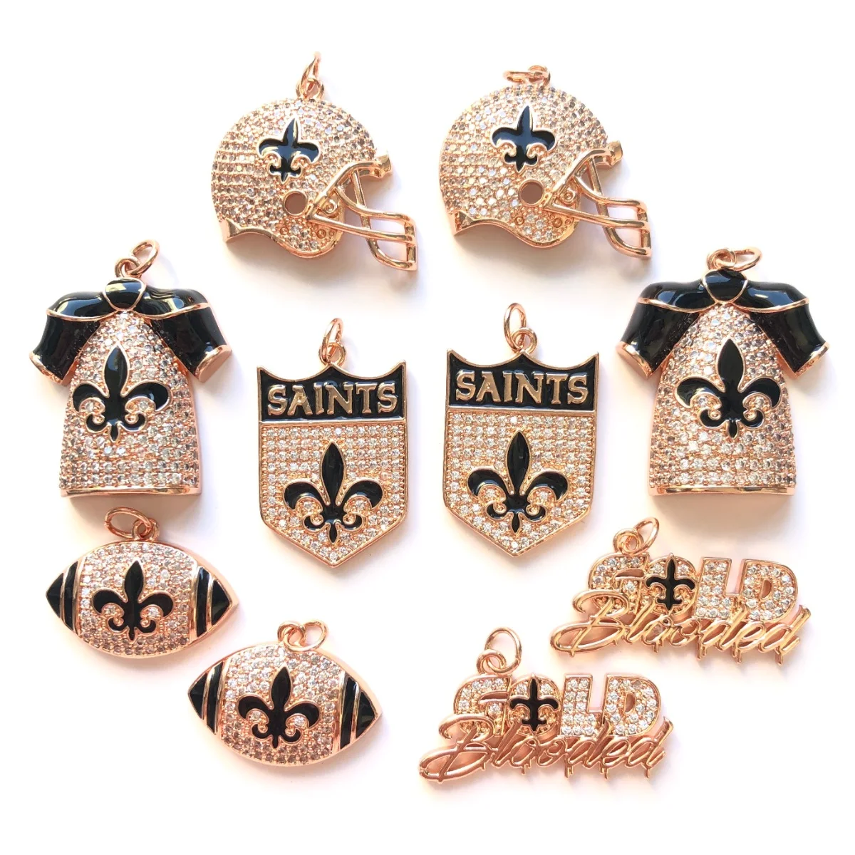 10pcs Cubic Zirconia Pave Fleur De Lis American Football Mix Charm Exquisite Pen