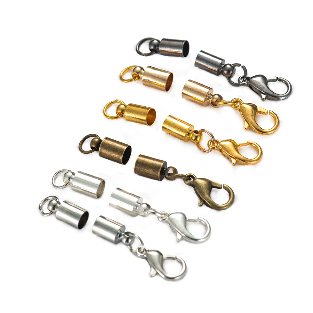 10pcs/Lot Leather Cord Bracelet Lobster Clasps Hooks 2-10 mm Crimps End Tip Caps