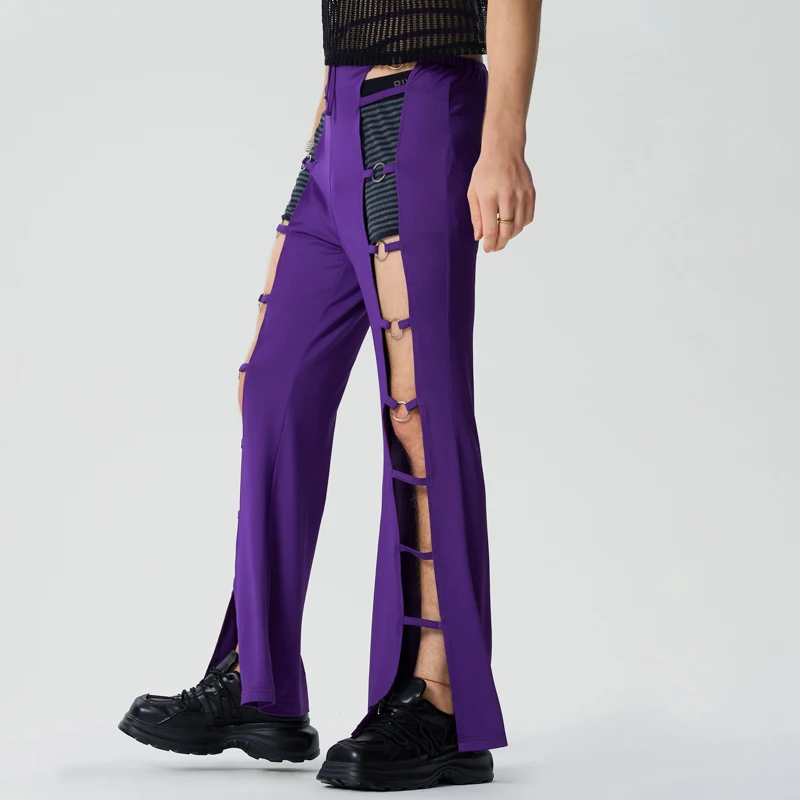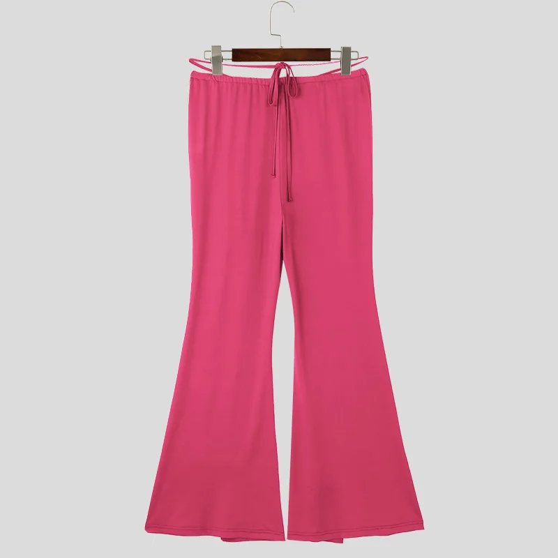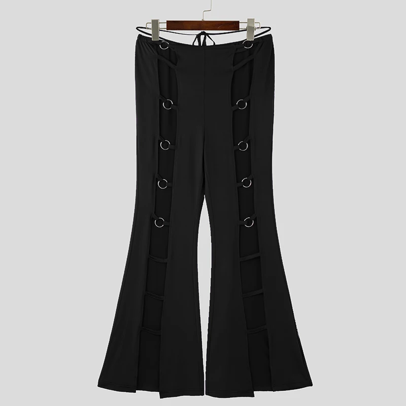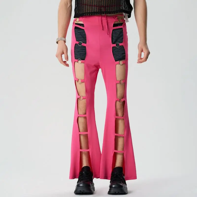 2024 Men Pants Solid Color Lace Up Hollow Out Casual Trousers Men Streetwear Sex