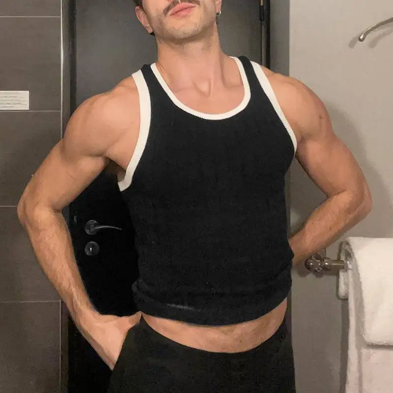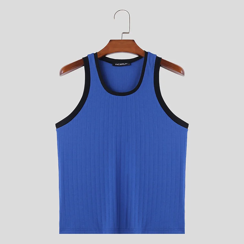 2024 Men Tank Tops Patchwork O-neck Sleeveless Skinny Male Vests Streetwear Summ