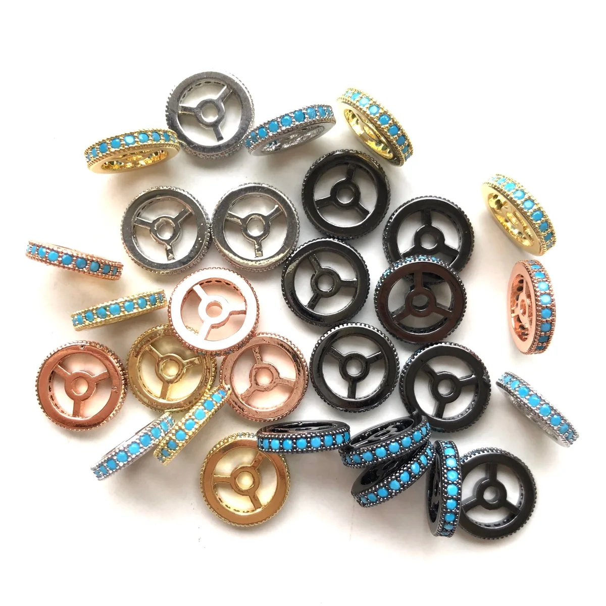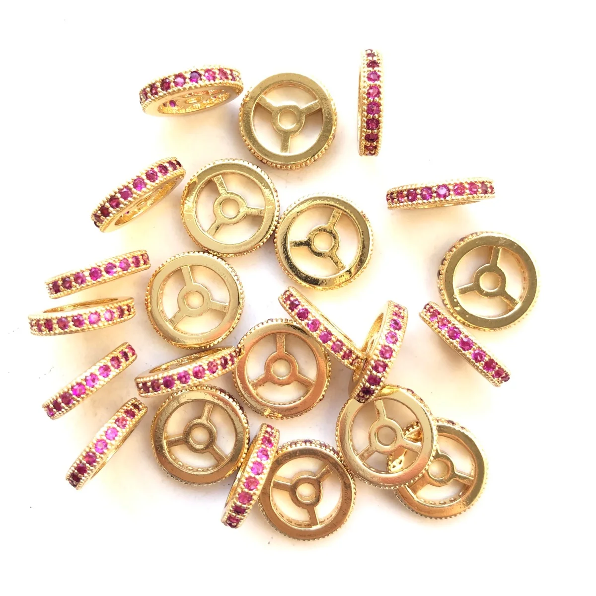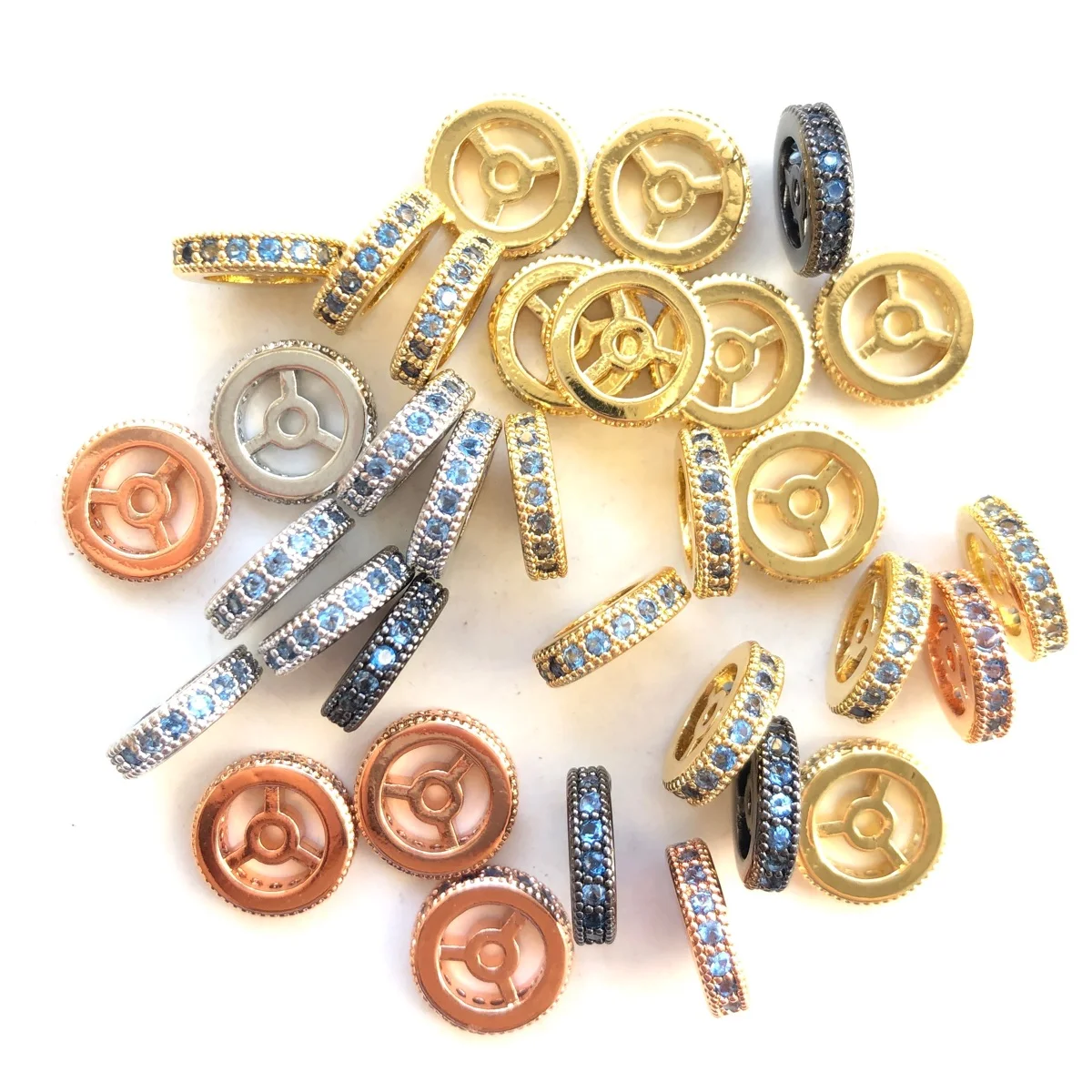 20pcs 9.6/12mm Colorful Zirconia Pave Wheel Spacer Rondelle Beads for Women Brac