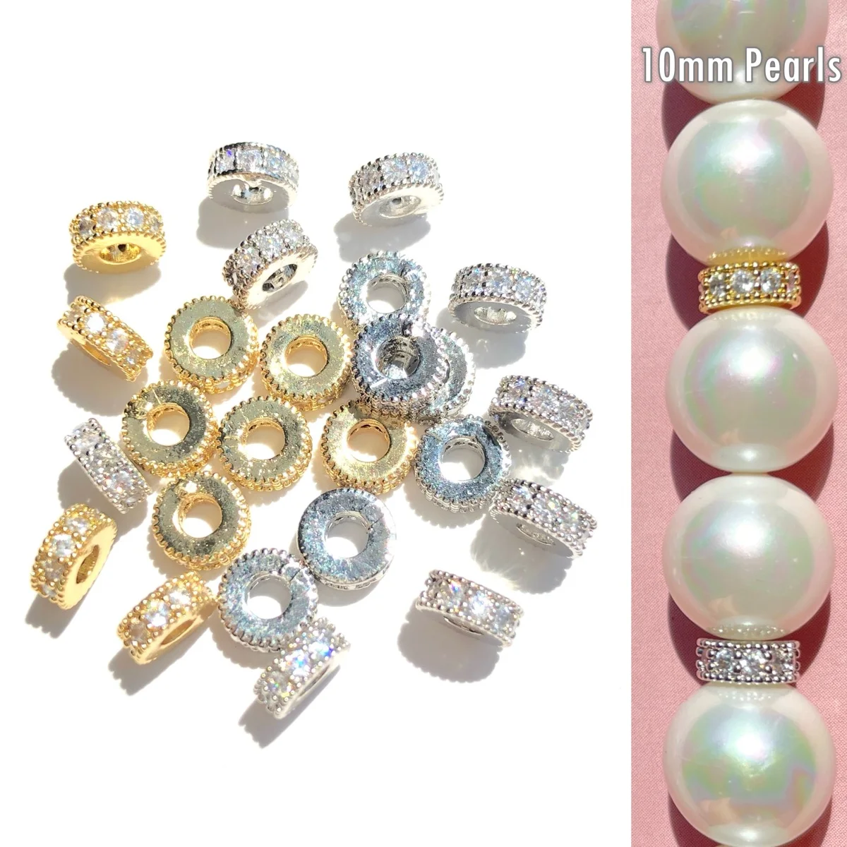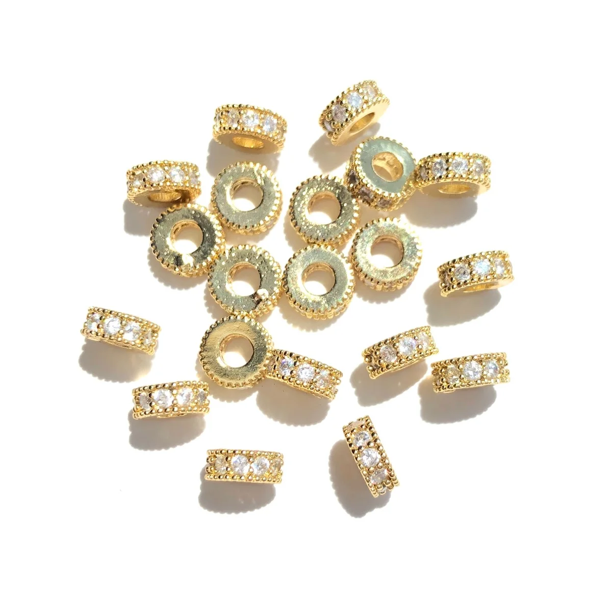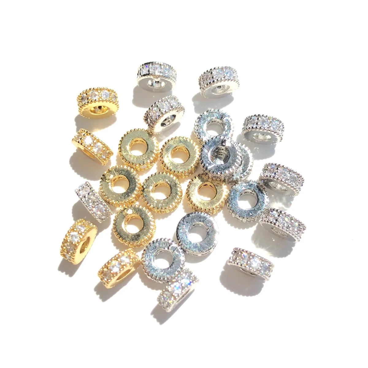 20pcs Zirconia Pave Small Size Wheel Spacer Bling Rondelle Beads for Bracelet Ne