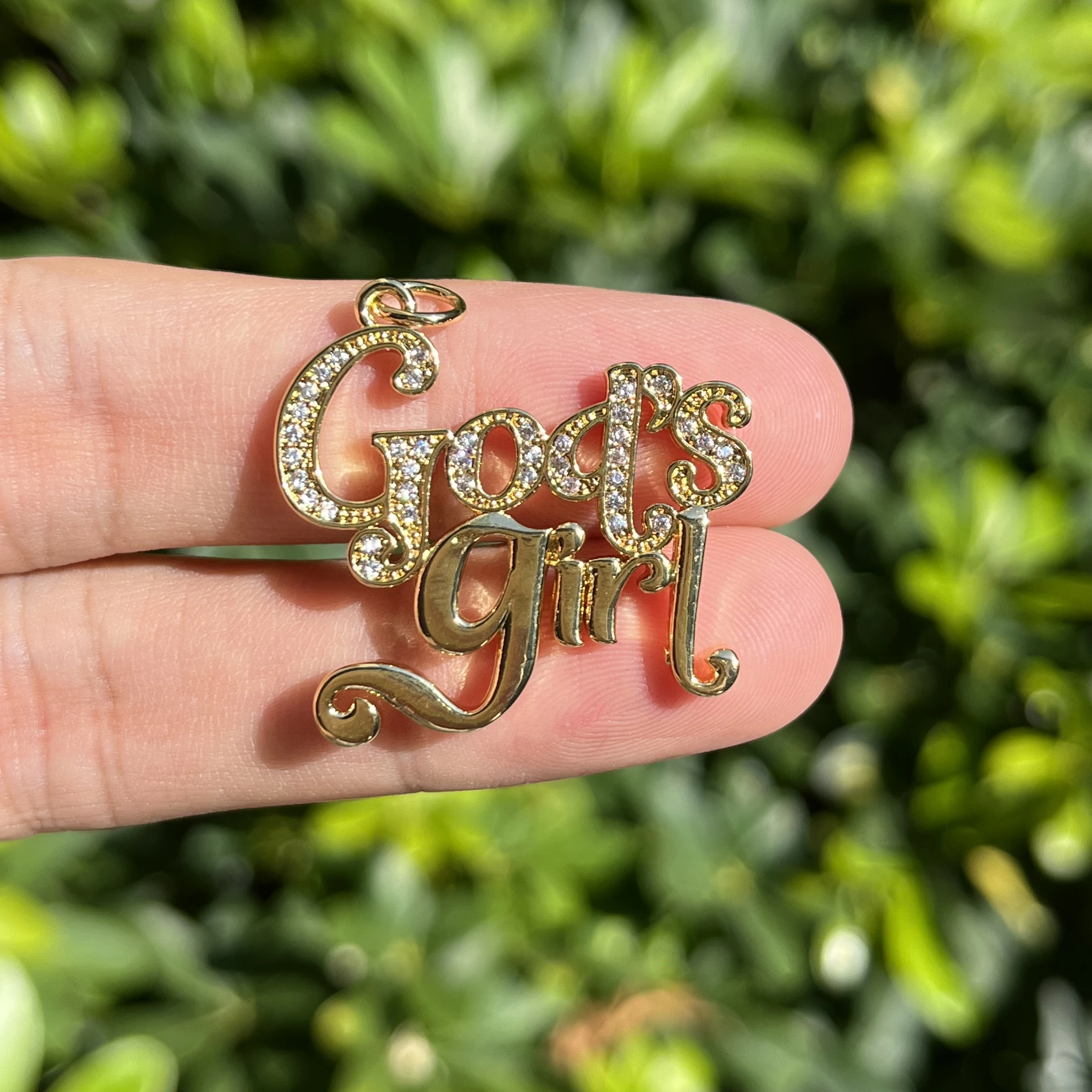 5pcs Zircon Pave Tag Pendant Charm Word Letter God's Girl for Handmade Party Gif