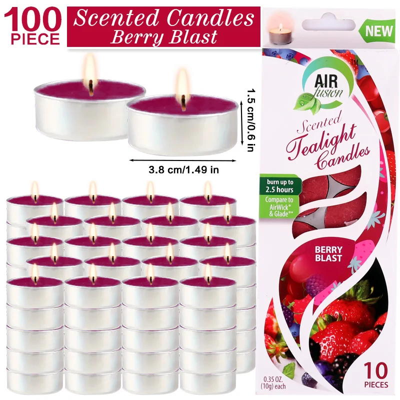 Air Fusion 100 Count Tea Lights Candles Burgundy Berry Blast Scented 2.5 Hours S