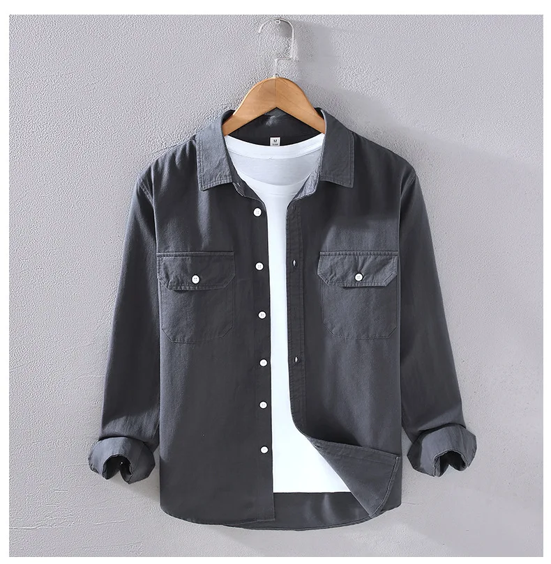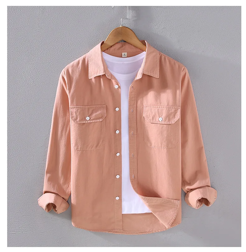 American Style Cargo Shirt Men Spring Autumn Mens Long Sleeve Shirts Pockets Pur