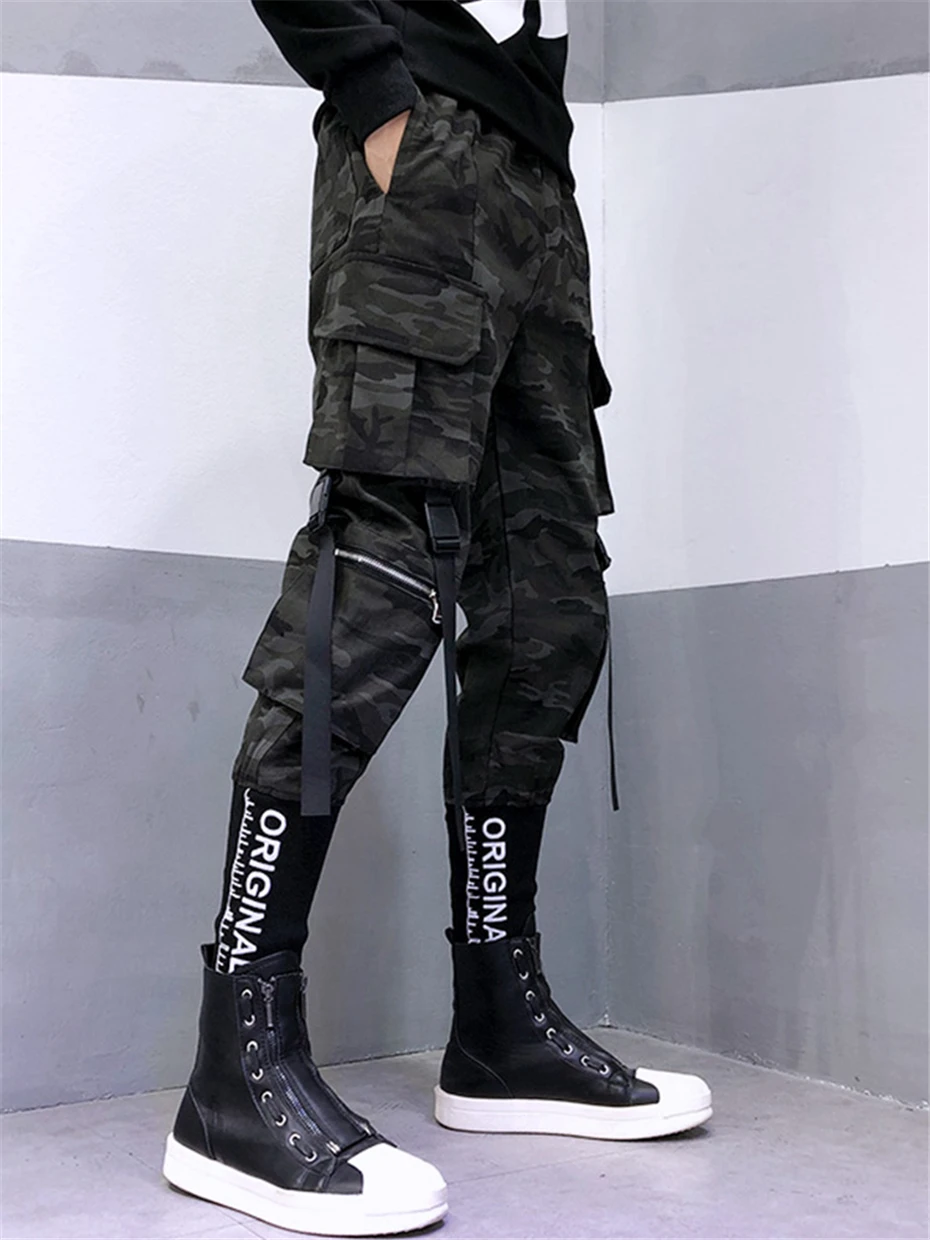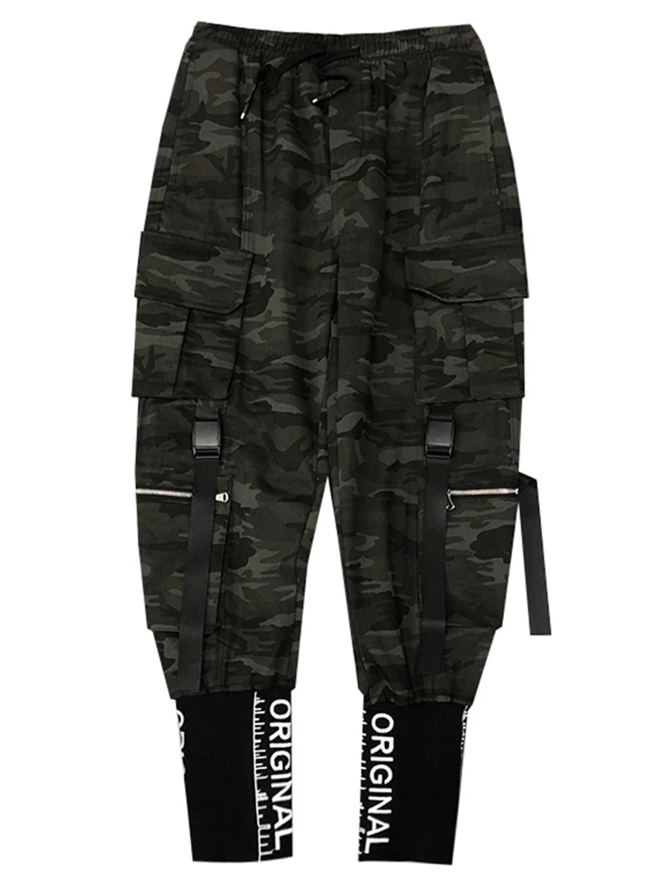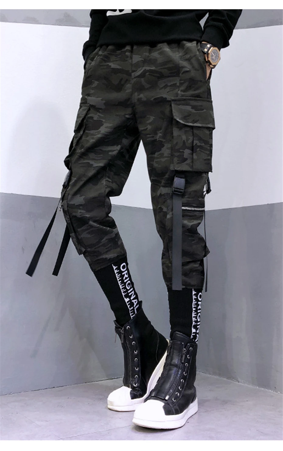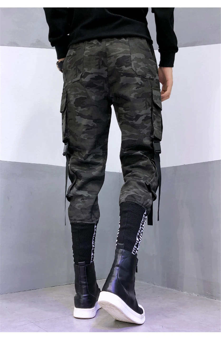 ARENS Camouflage Tactical Functional Cargo Pants Joggers Men Ribbons Multi-pocke