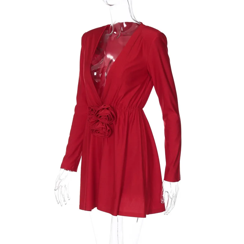 Articat | Women's Sexy Deep V 3D Floral Mini Dress - Slay That Club Look!