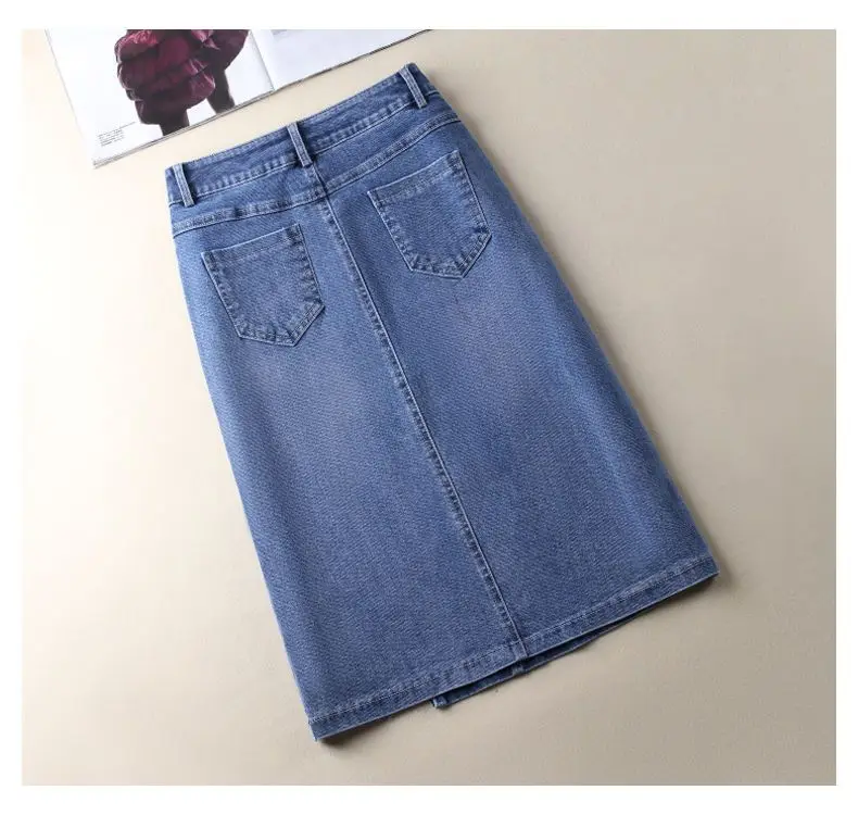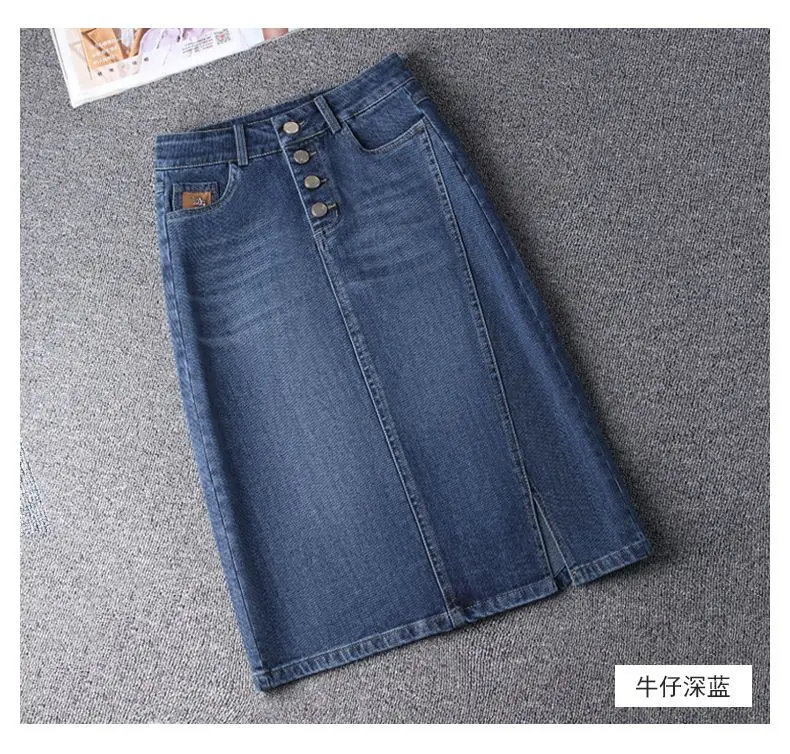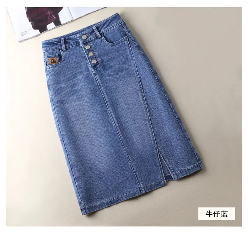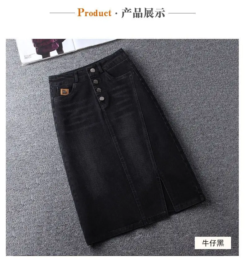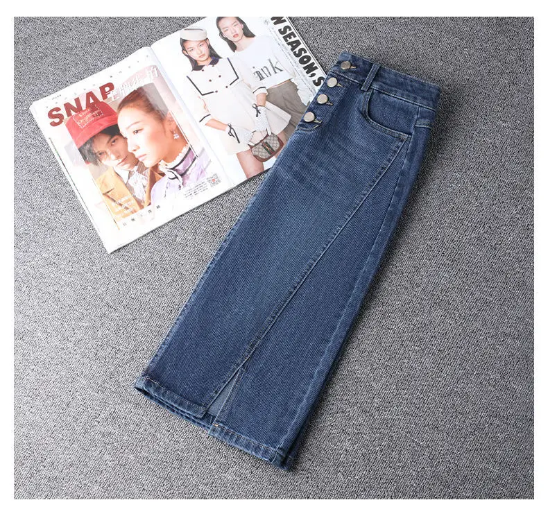 Denim Skirt Women's 2025 Spring/Summer New Slim High Waist Split One Step A-line
