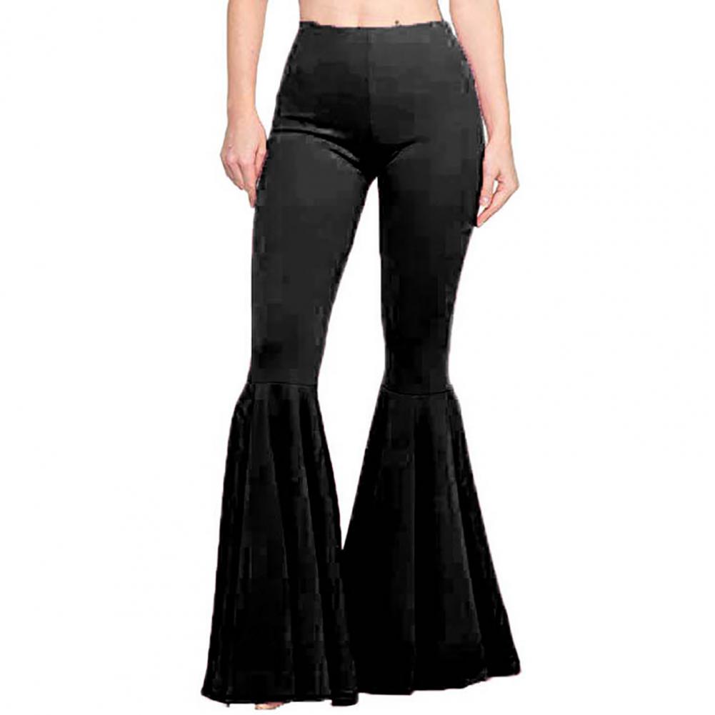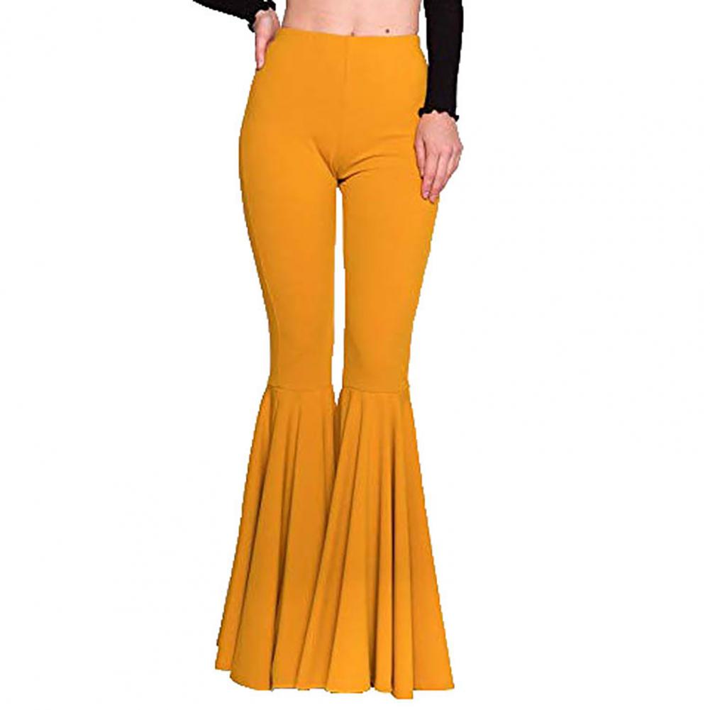 High-Waist Elastic Waistband Control Tummy Hip Lifting Lady Trousers Skinny Breathable Women Solid Color Sports Mermaid Flared Pants Streetwear