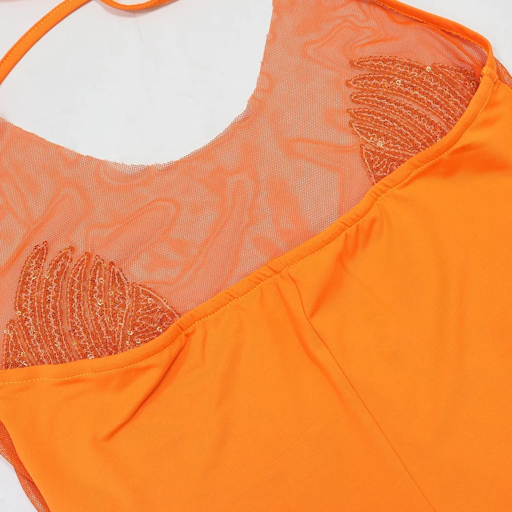 HLJ Fashion Perspective Sequin Halter Lace Up Bodycon Mini Dress Women Backless