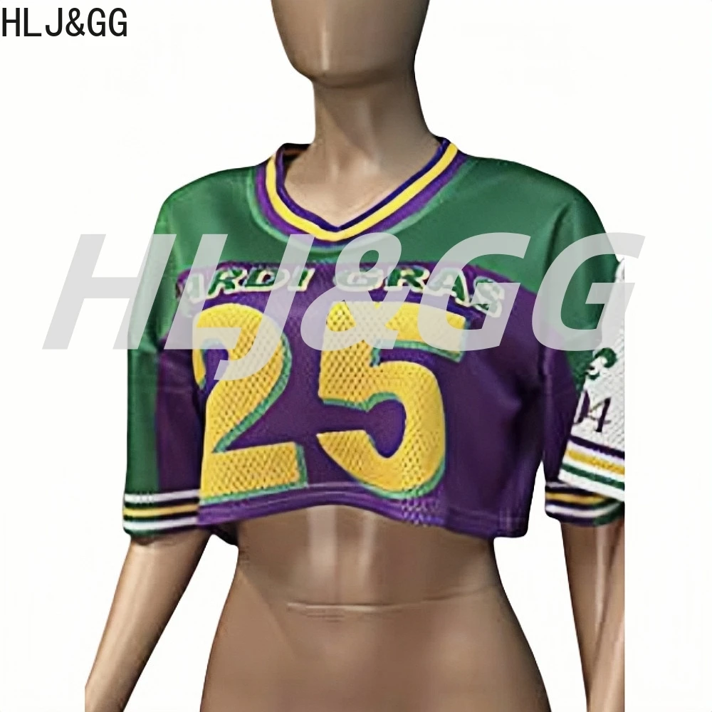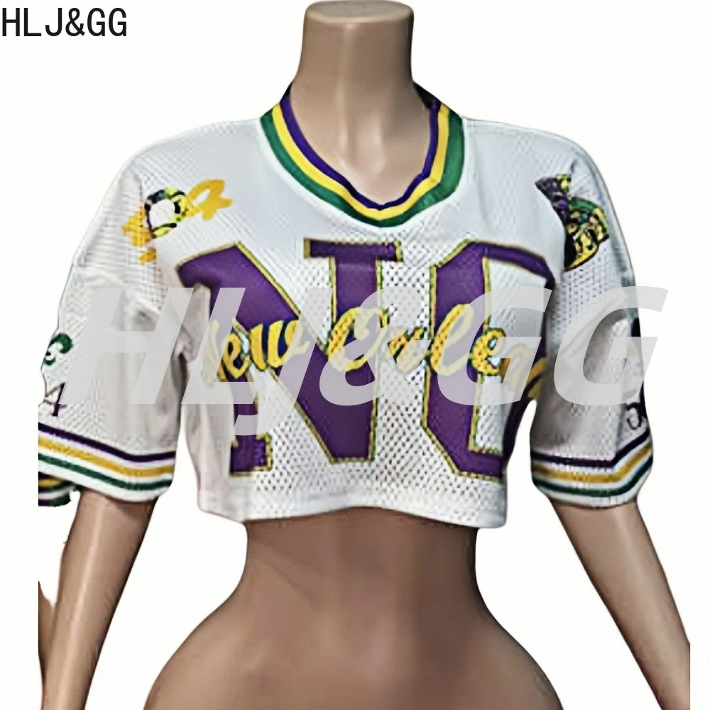 HLJ&GG Summer New American Retro Letter Print Tshirts Women V Neck Short Sleeve