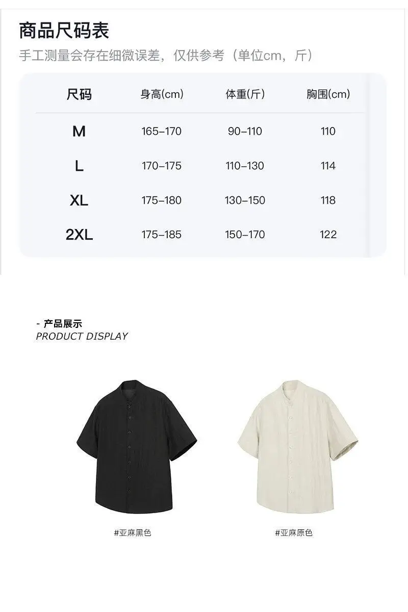 IEFB New Chinese Style Men's Set Stand Collar Short Sleeve Shirt Elastic Waist S