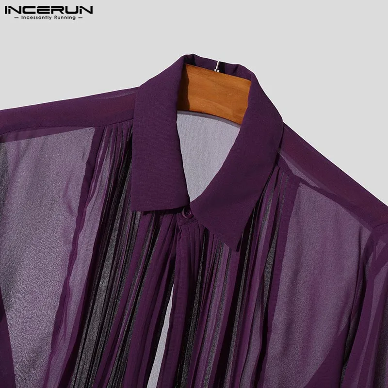 INCERUN | Men's Solid Long Sleeve Tops Polyester Kpop Fashion [INCERUN Shirt]