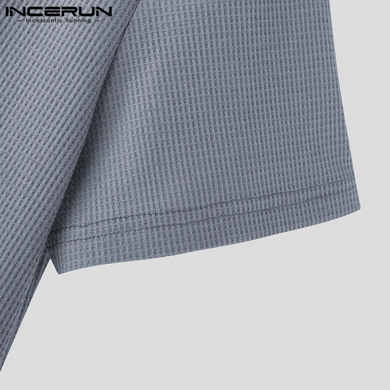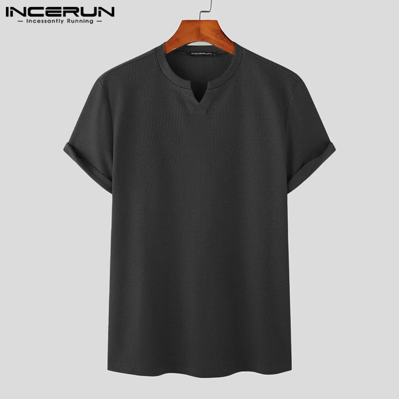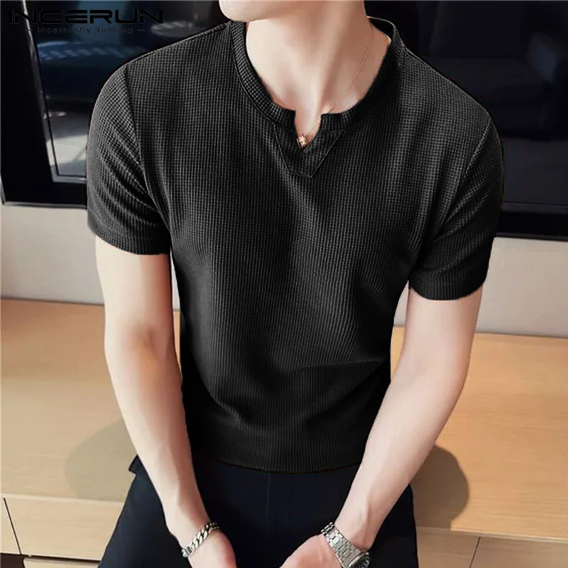 INCERUN: Men's Black V Neck Short Sleeve Casual Streetwear Tops