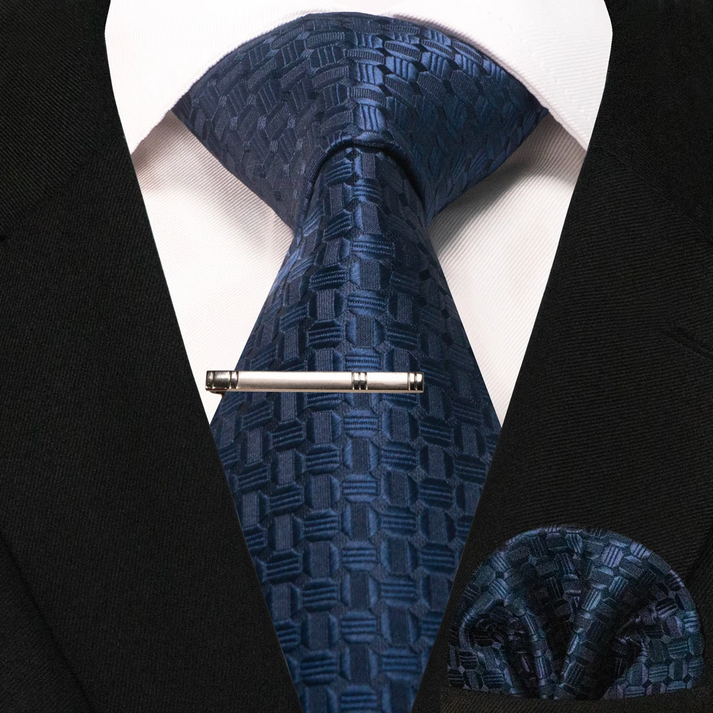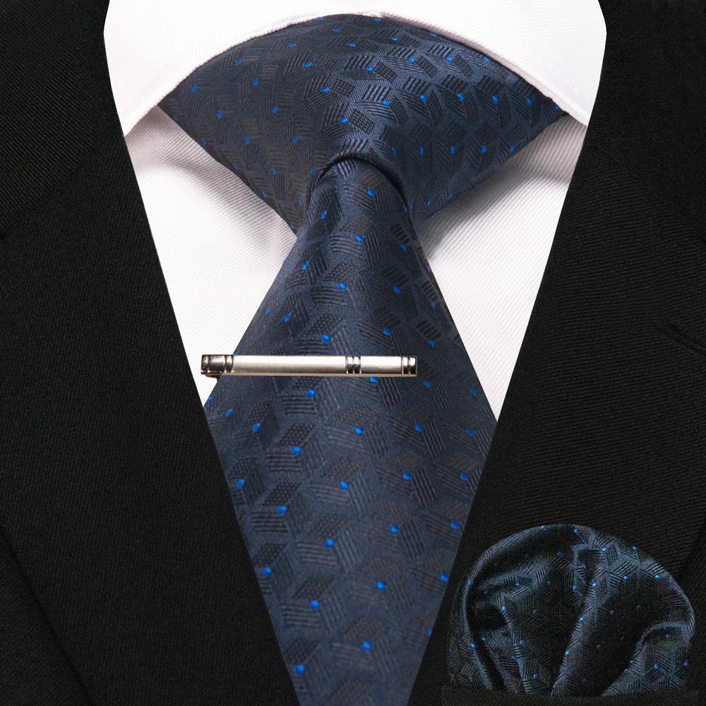 JEMYGINS- Silk Blue and Red Tie Set with Dots and Plaid for Weddings