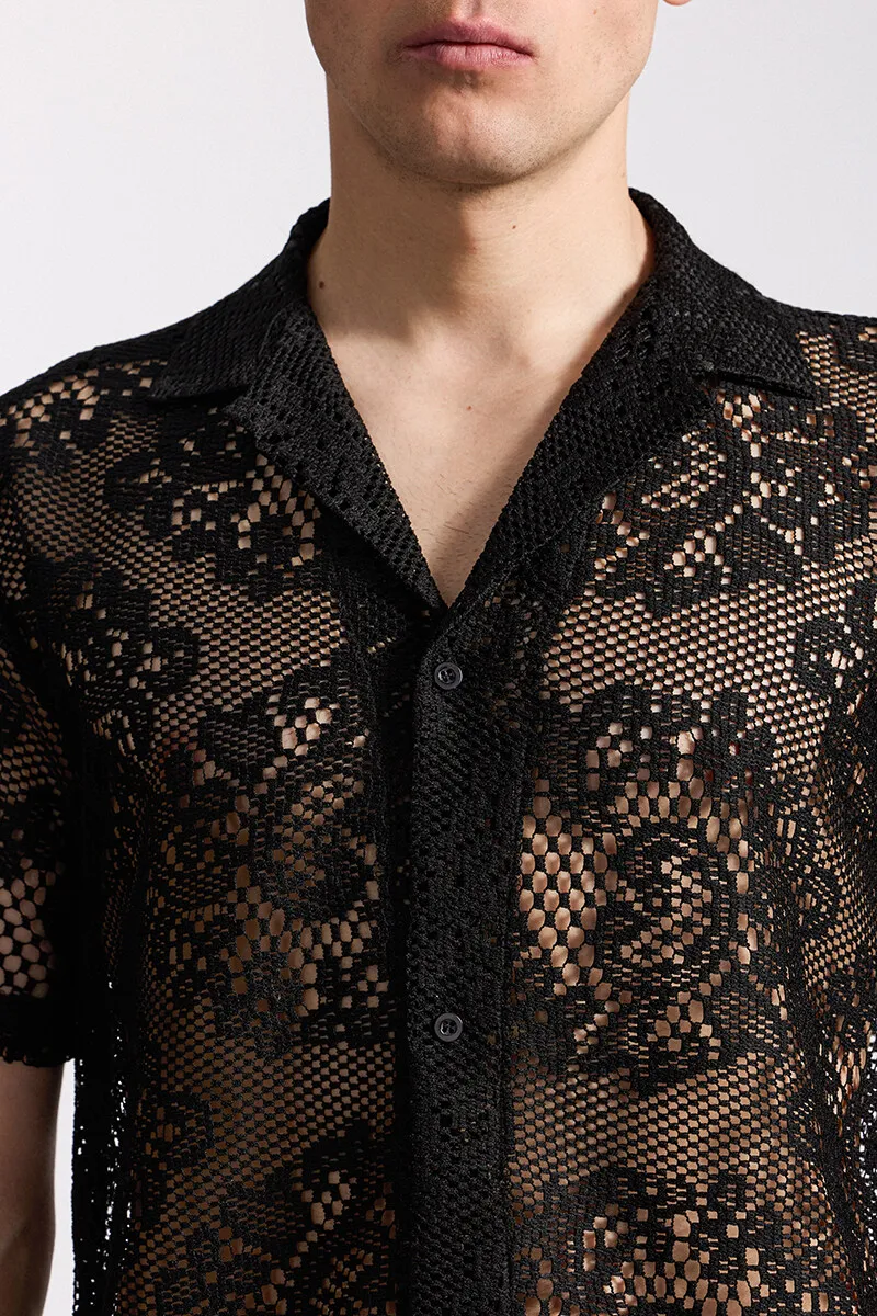 Description 1: Mens Mesh Lace Knit shirt;Perspective Shirt Men