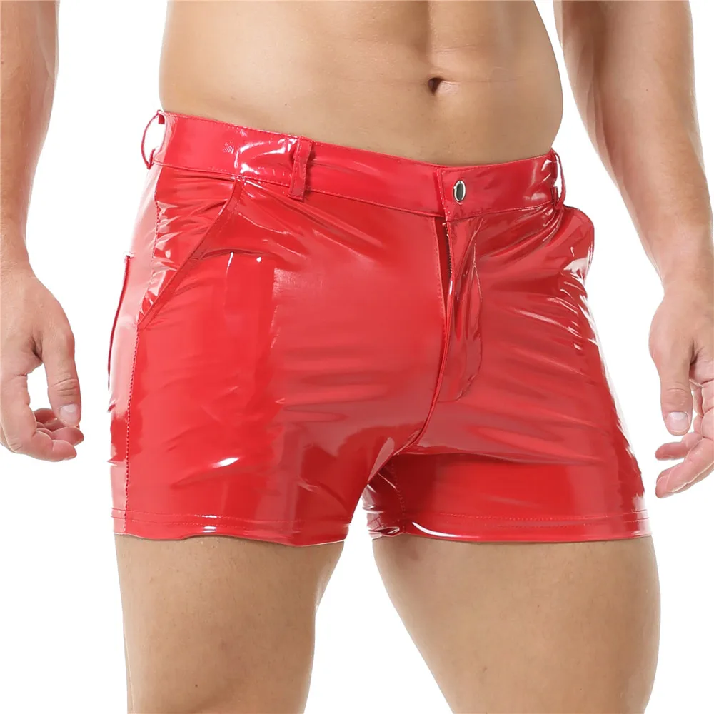Men's Shiny PVC Leather Shorts Fashion Nightclub Latex Short Pants Zipper Men Se