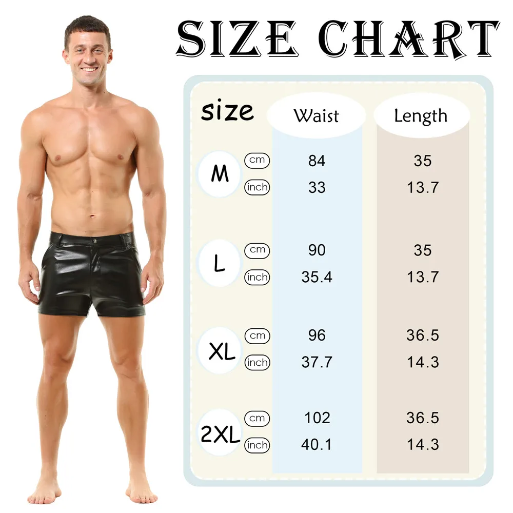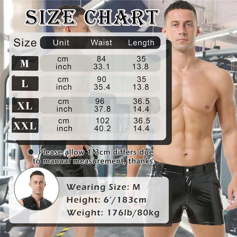 Men's Shiny PVC Leather Shorts Fashion Nightclub Latex Short Pants Zipper Men Sexy PU Leather Shorts with Pockets for Club Party