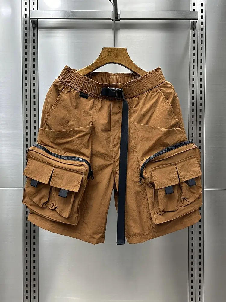 Men's Summer Solid Color Multi-pocket Cargo Shorts Trendy Brand Large Size Loose