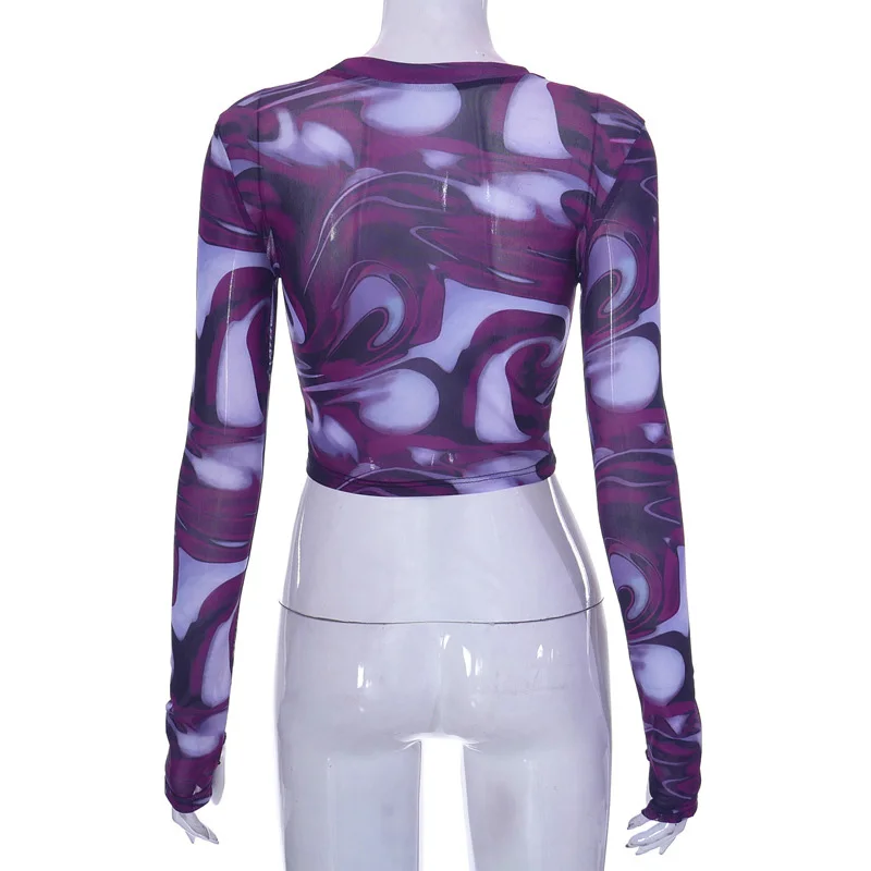 Mesh Sheer Crop Top | Women’s Y2K Vibes, Long Sleeve Streetwear Flex, S-2XL