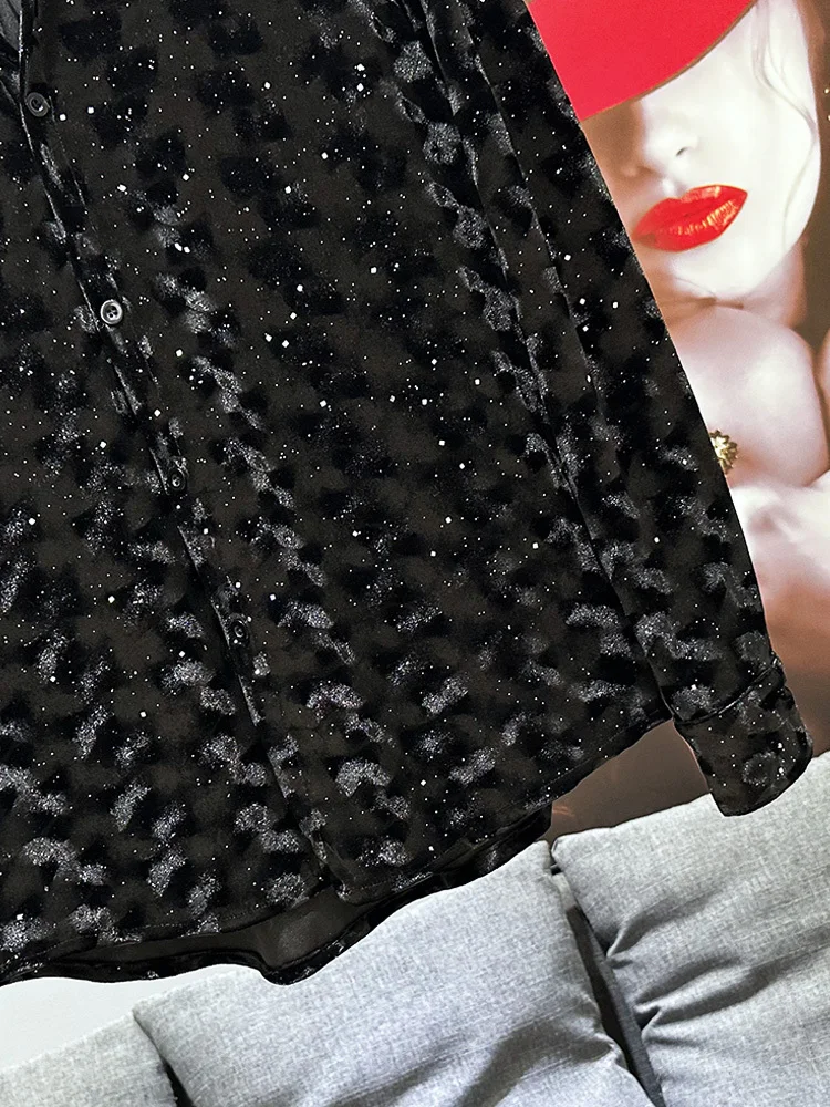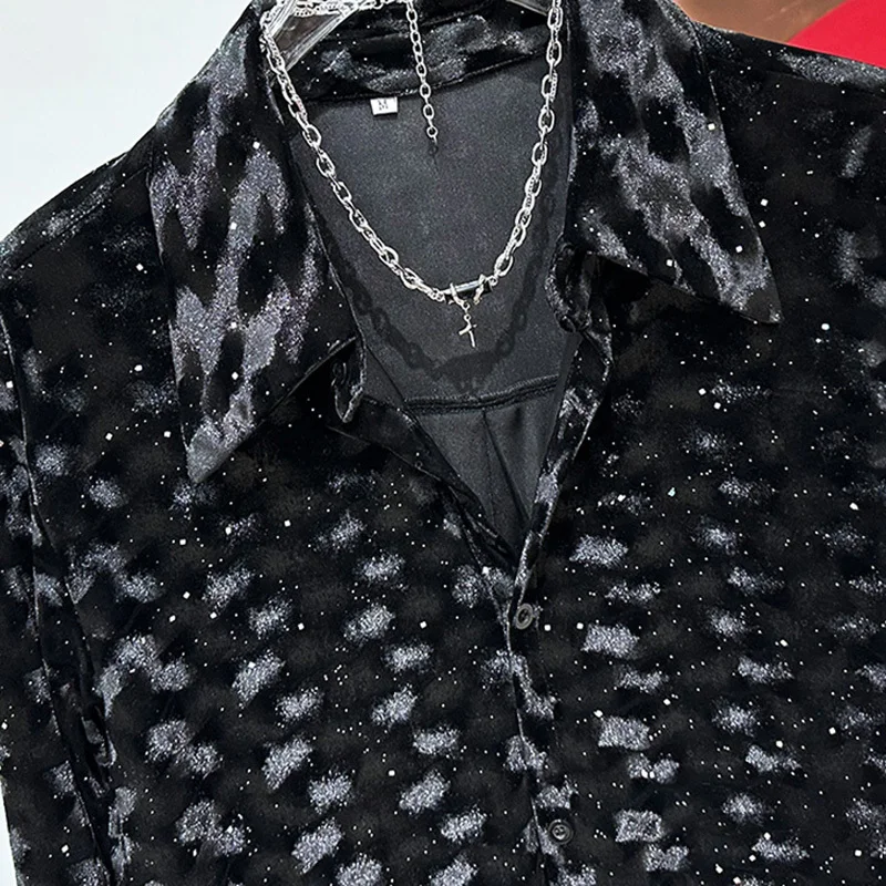 PFHQ- Men's Velvet Shirt, Solid Color, Turn-down Collar, Trendy 2024