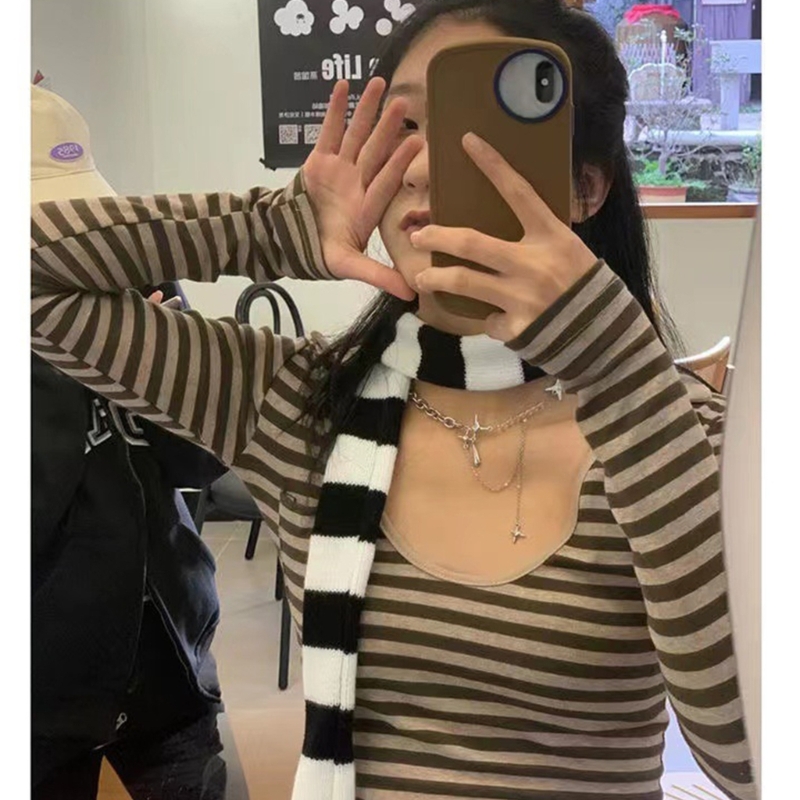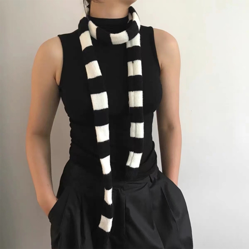 Punk Harajuku Subculture Two-dimensional Striped Thin Scarf Woman Thickened Knit