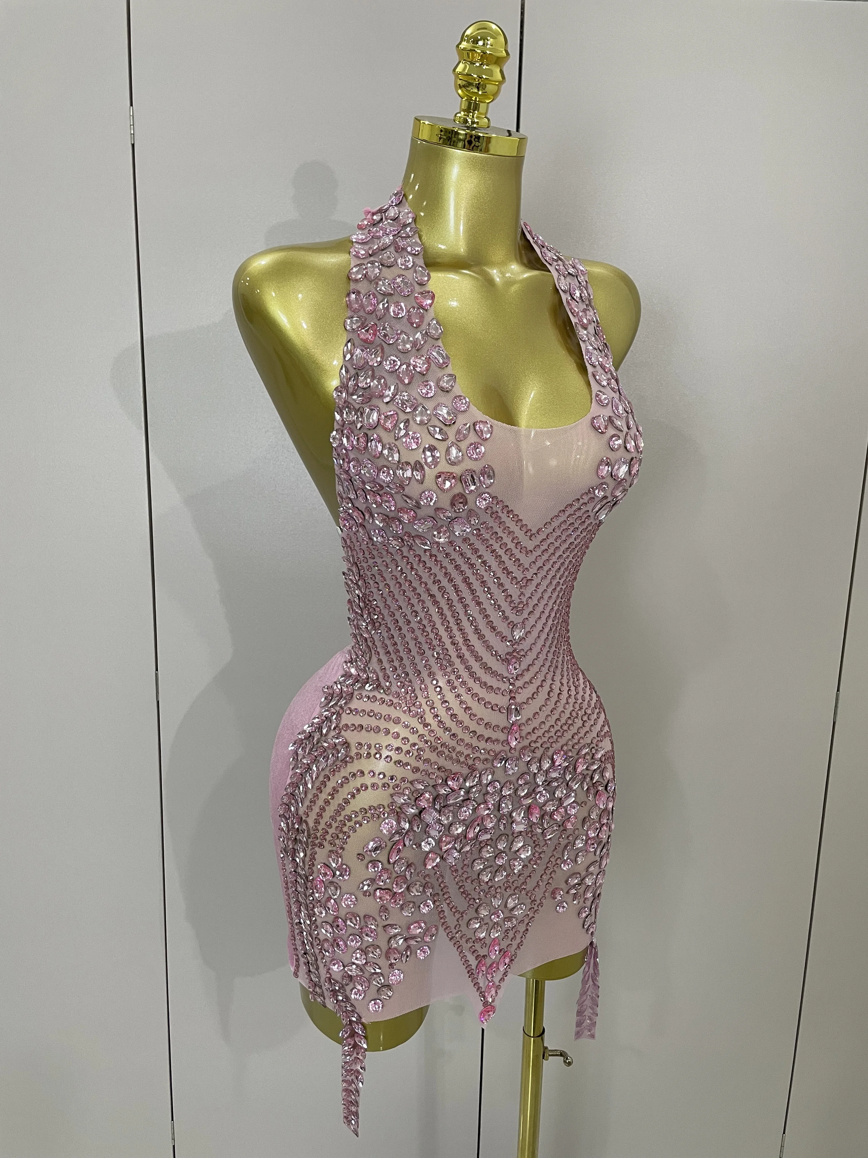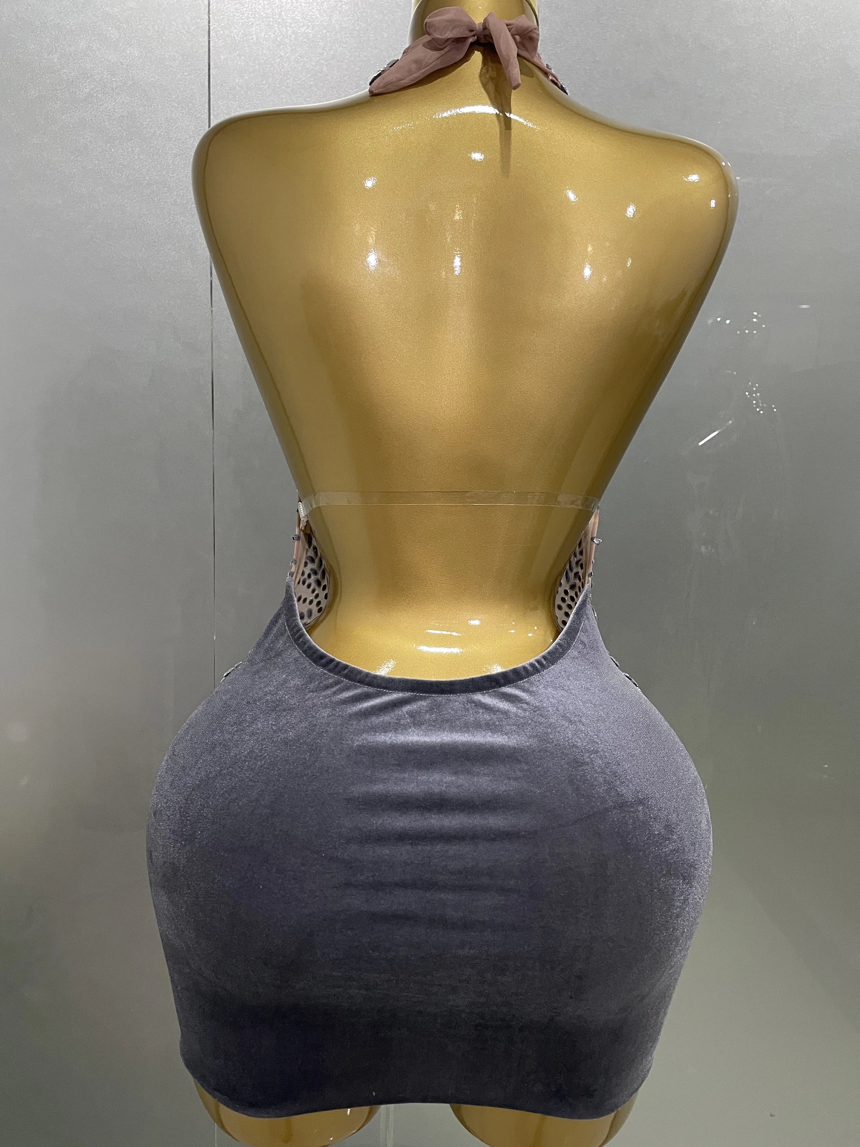 Rhinestone Halter Backless Mini Dress for Women – Sparkle & Slay All Night!