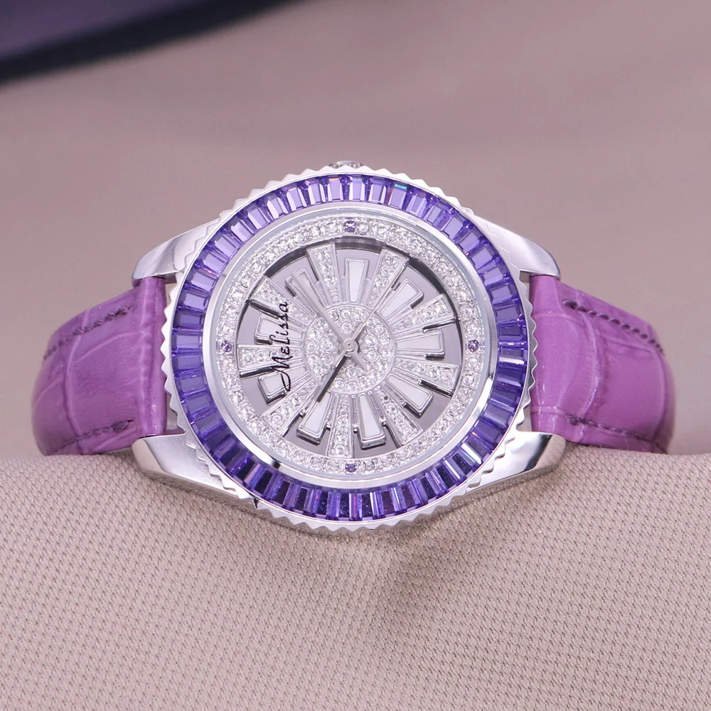Sale Melissa Women's Watch Rhinestone Crystal Fashion Hour Real Leather Bracelet