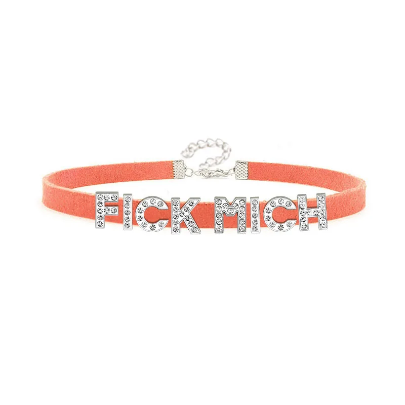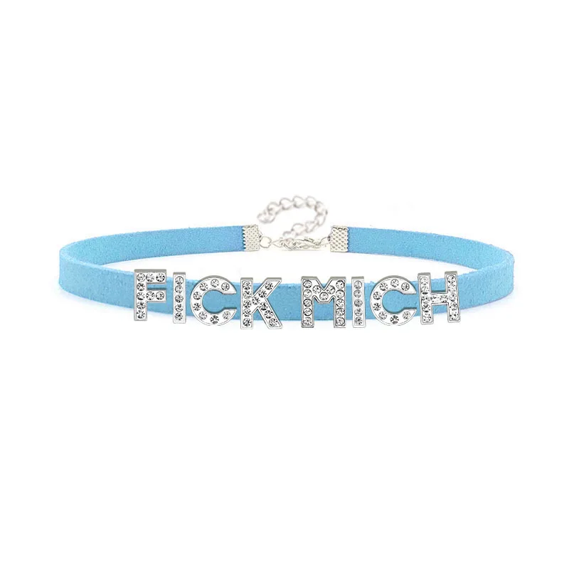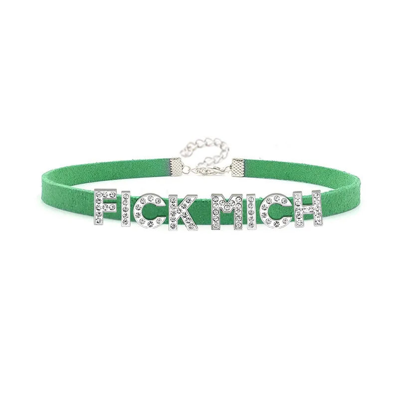 Sexy Rhinestone Letters FICK MICH Collar Choker Necklace Men Women Goth Harajuku