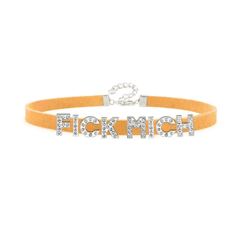 Sexy Rhinestone Letters FICK MICH Collar Choker Necklace Men Women Goth Harajuku DDLG Customized Chocker Cosplay Jewelry Gift