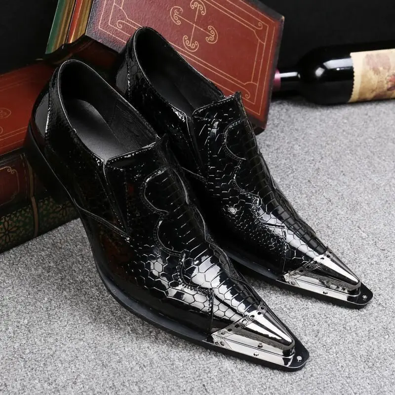 Summer Slip-on business dress mens Derby shoes black snake Luxury Genuine leathe