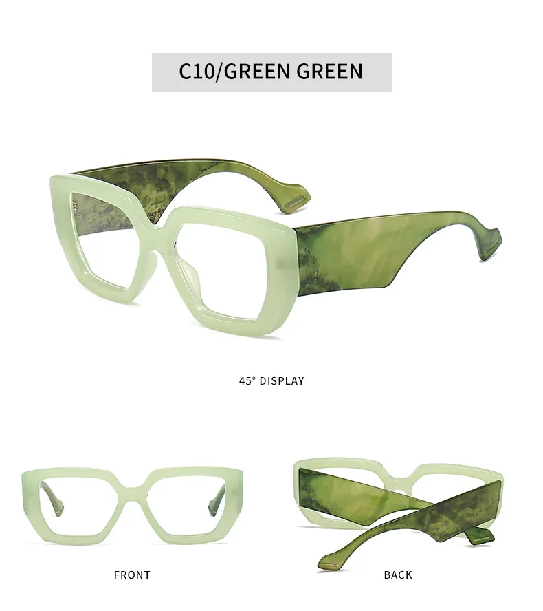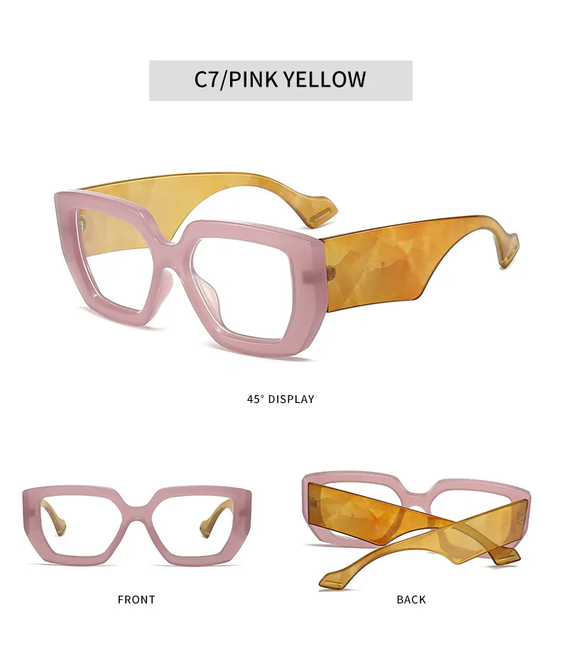 Trendy Thick Frame Oversized Square Glasses Women Men Colorful Wide Legs Eyewear