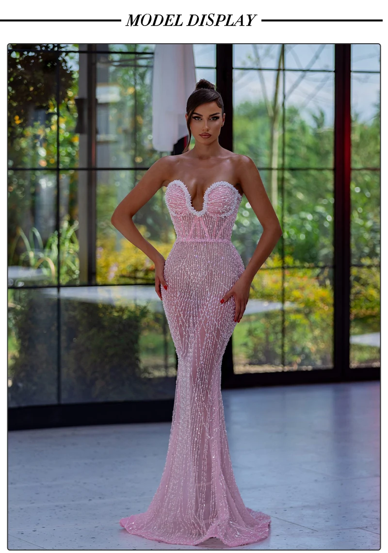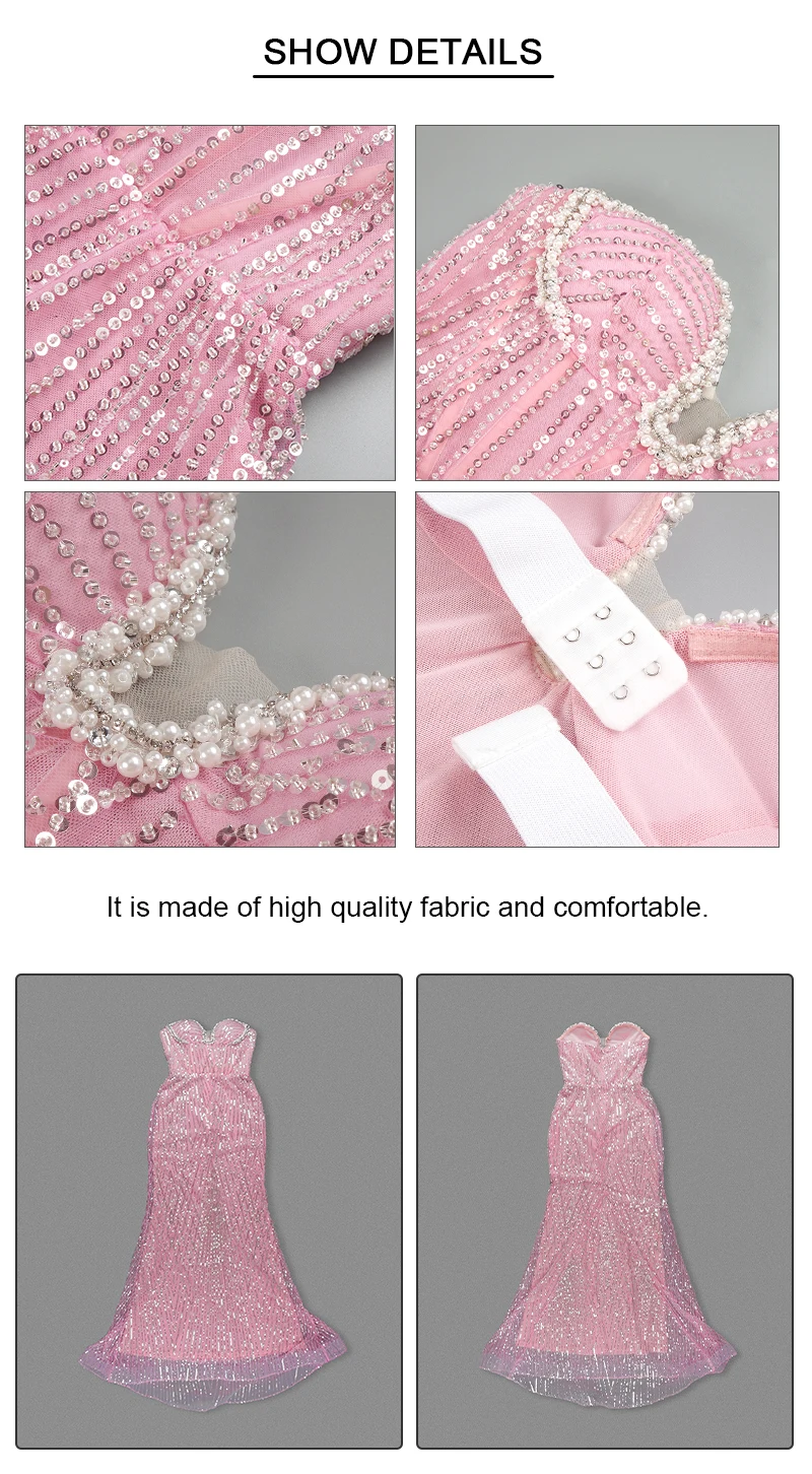 VC | Women’s Illusion Pink Sequin Strapless Dress - Pearls & Prom Vibes! ✨