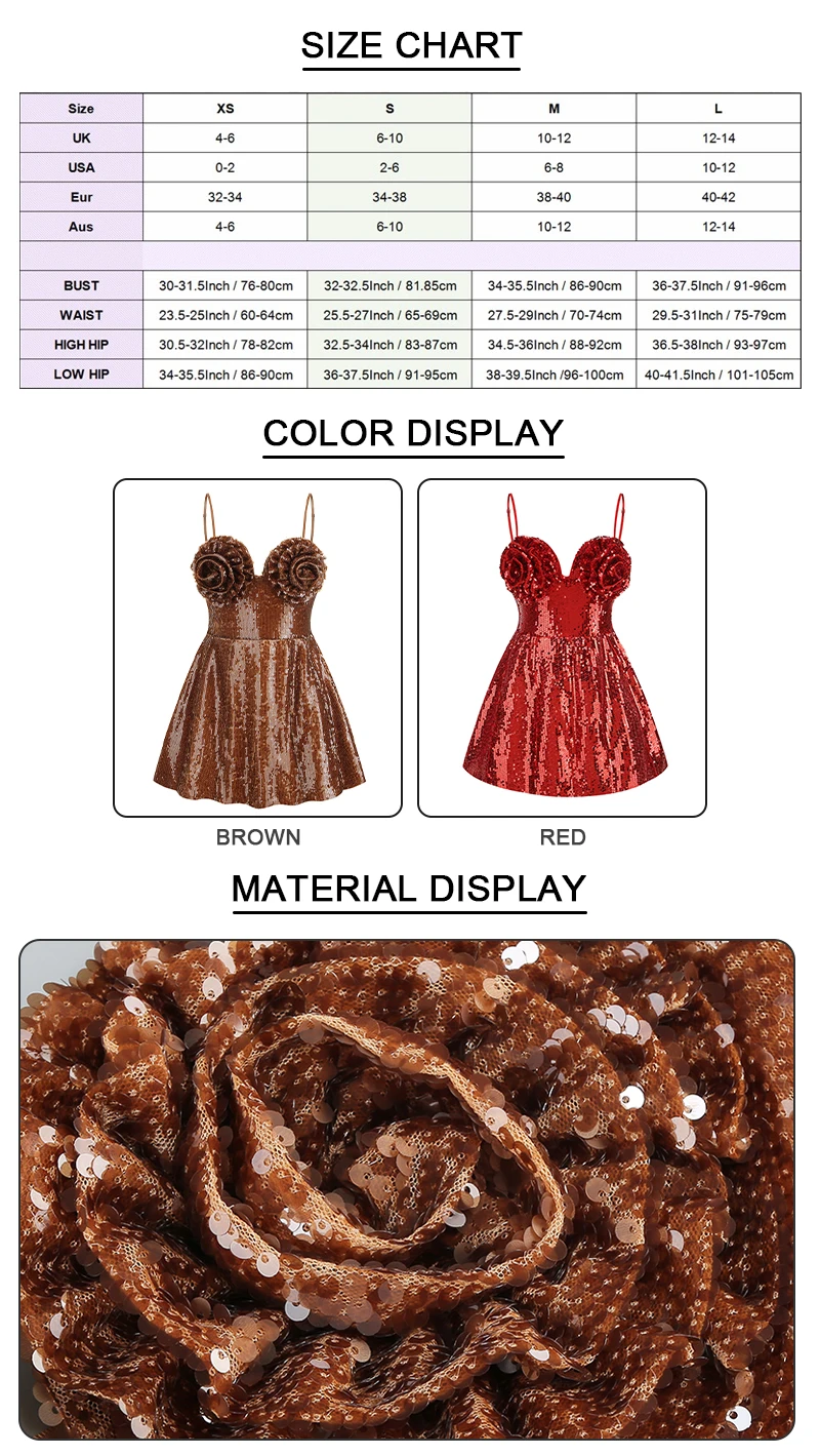VC | Women’s Sequin Mini Dress w/ 3D Flowers – Party Slay All Night, A-Line