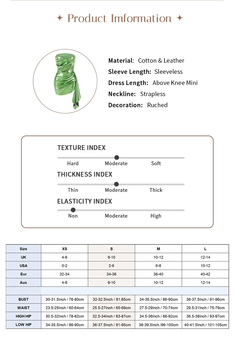 Make a bold fashion statement at a fashion - forward party with this glamorous strapless shiny lime mini dress. The strapless design showcases your shoulders and collarbones, and the metallic lime color is both vibrant and eye - catching. The ruched side detail creates a flattering silhouette, giving the dress a contemporary edge. Whether you're mingling or dancing, this dress is sure to turn heads. Comes in various sizes.