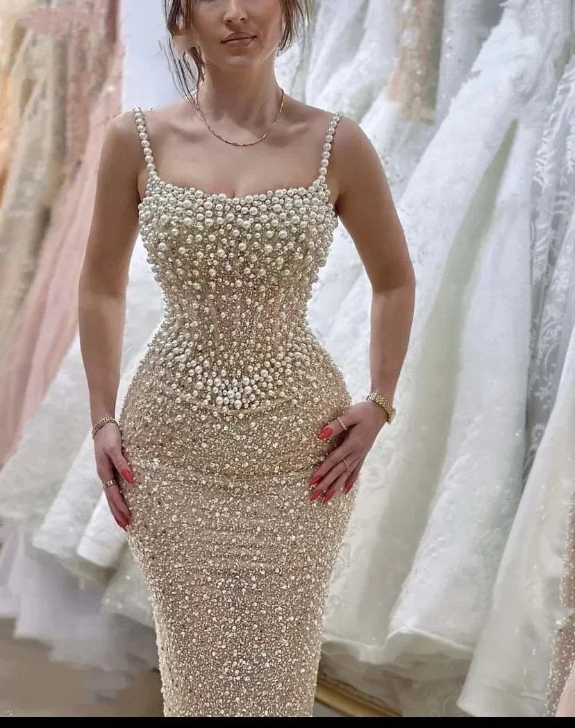 Vinca SunnyCustomized Luxurious Pearls Prom Dresses for Women Rhinestones Mermai