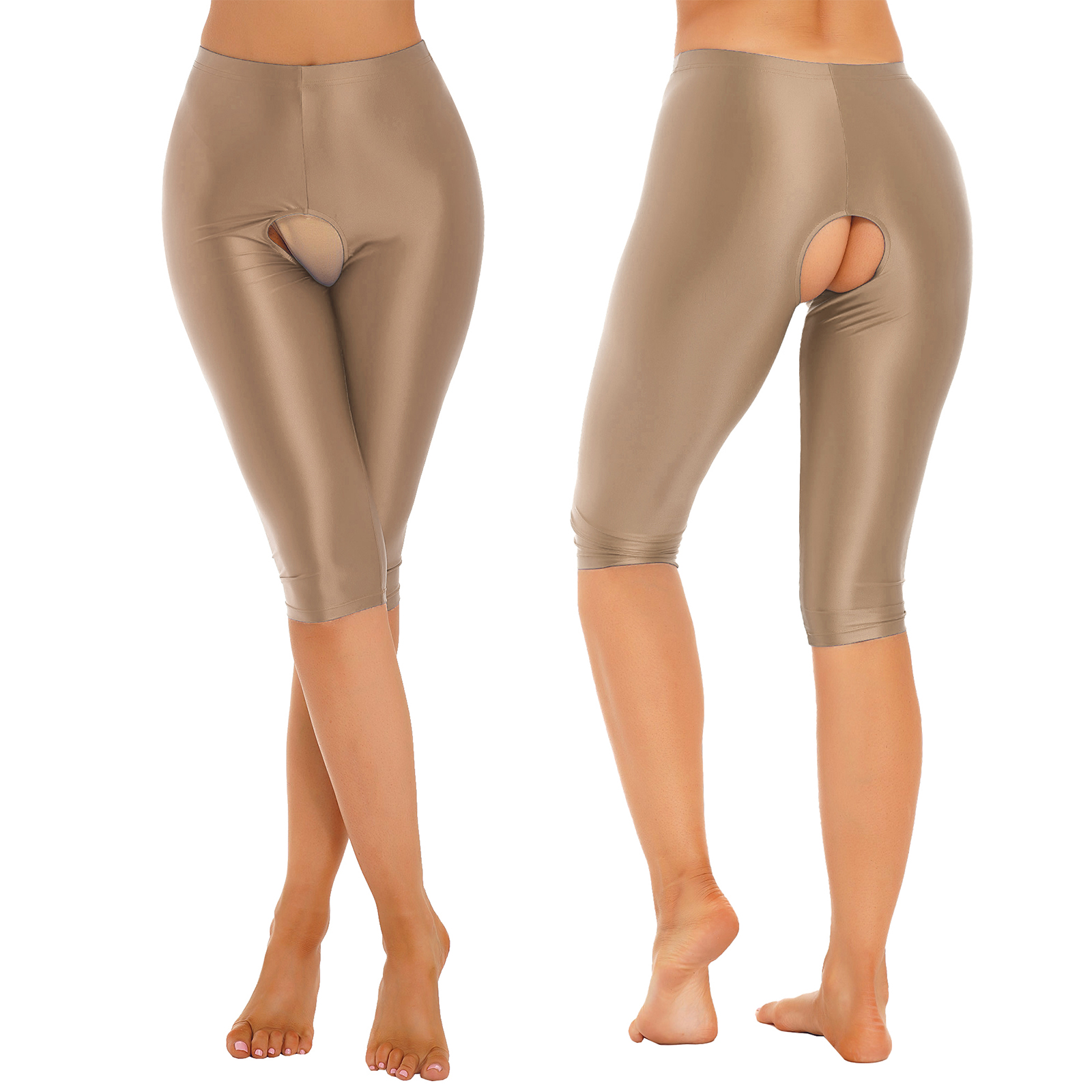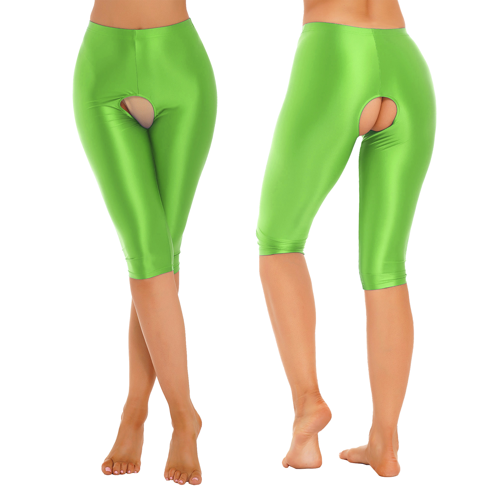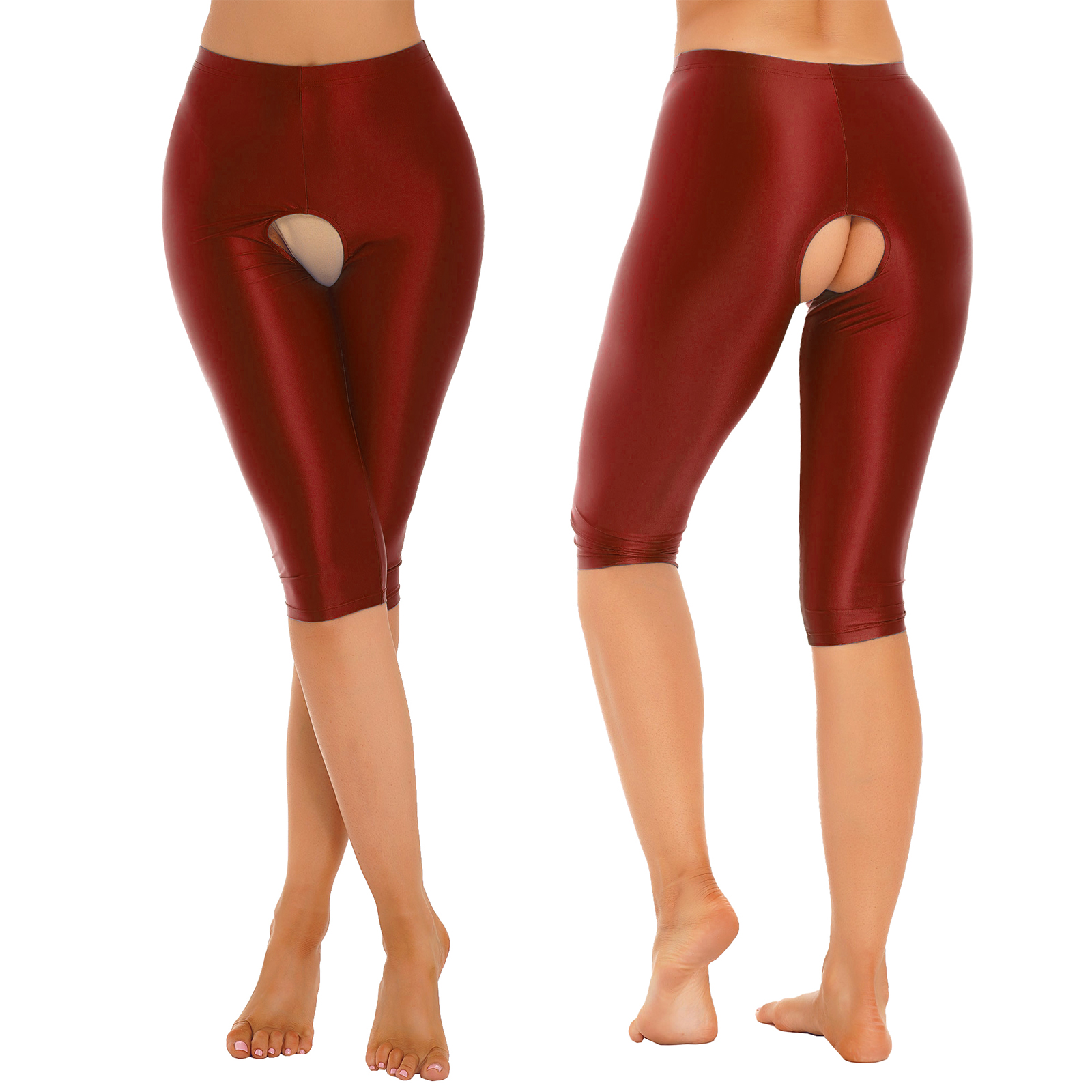 Women Sexy Glossy Crotchless Shorts Rave Party Nightclub Hot Pants Stretchy Smoo