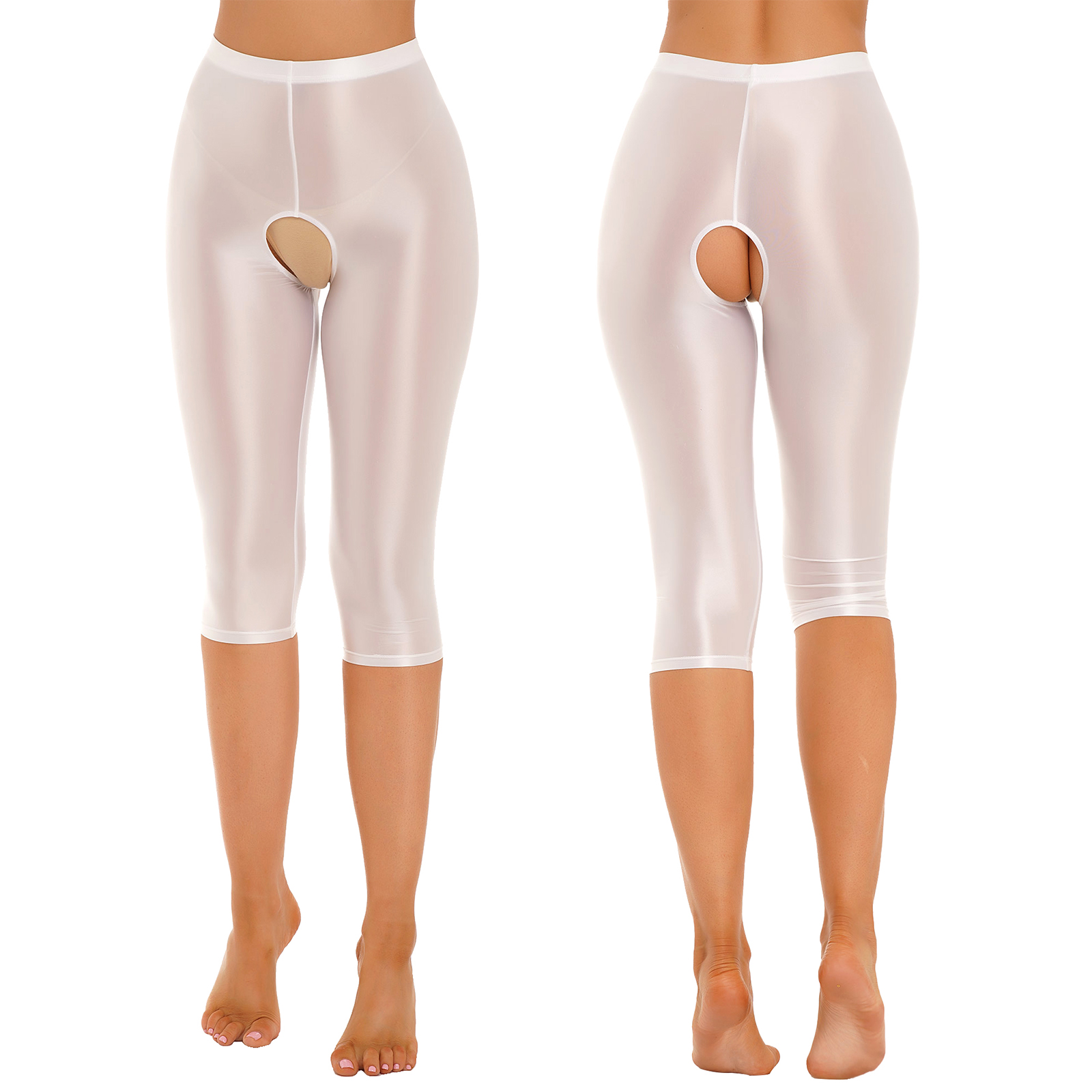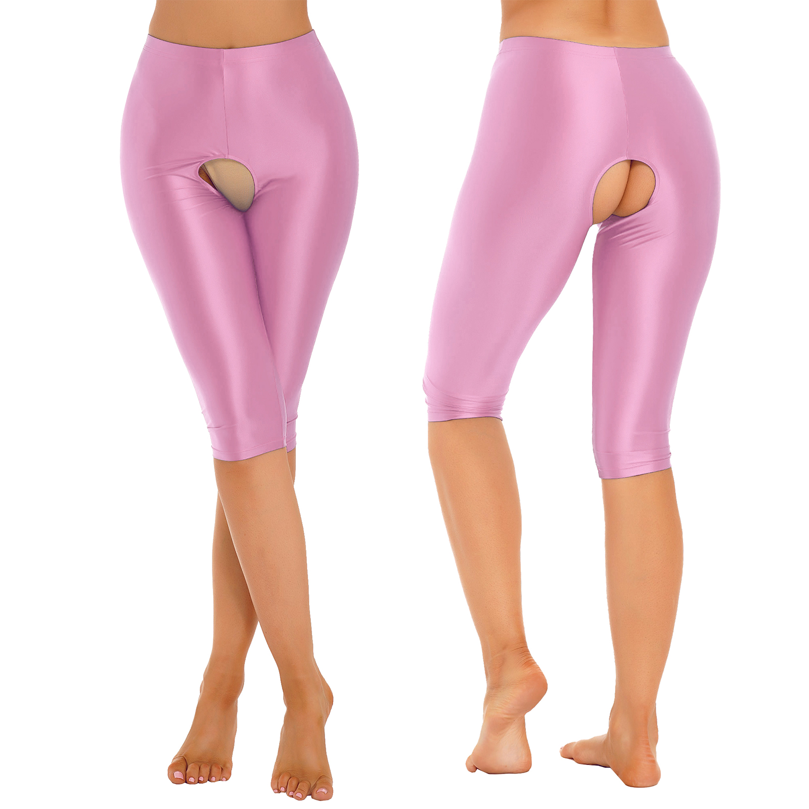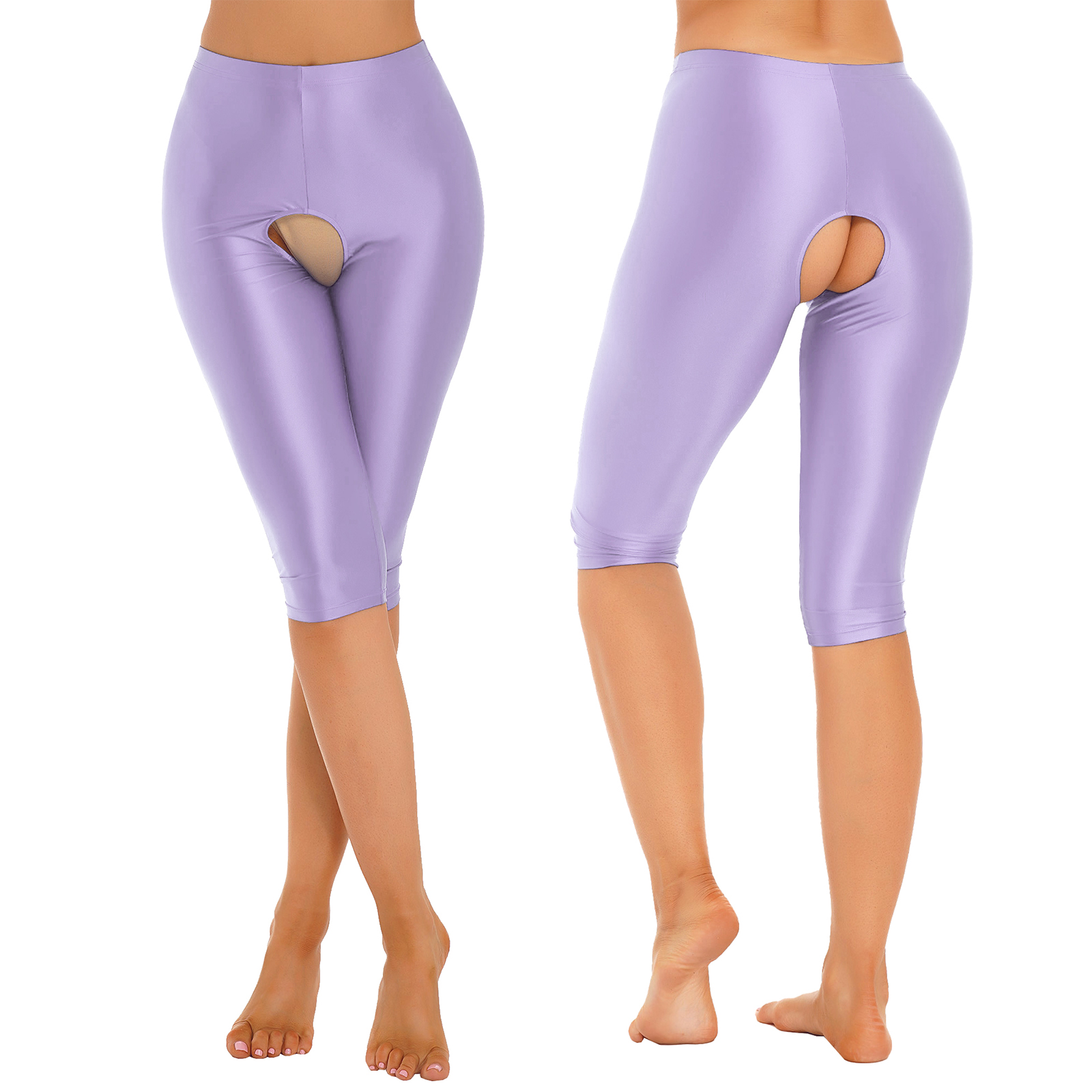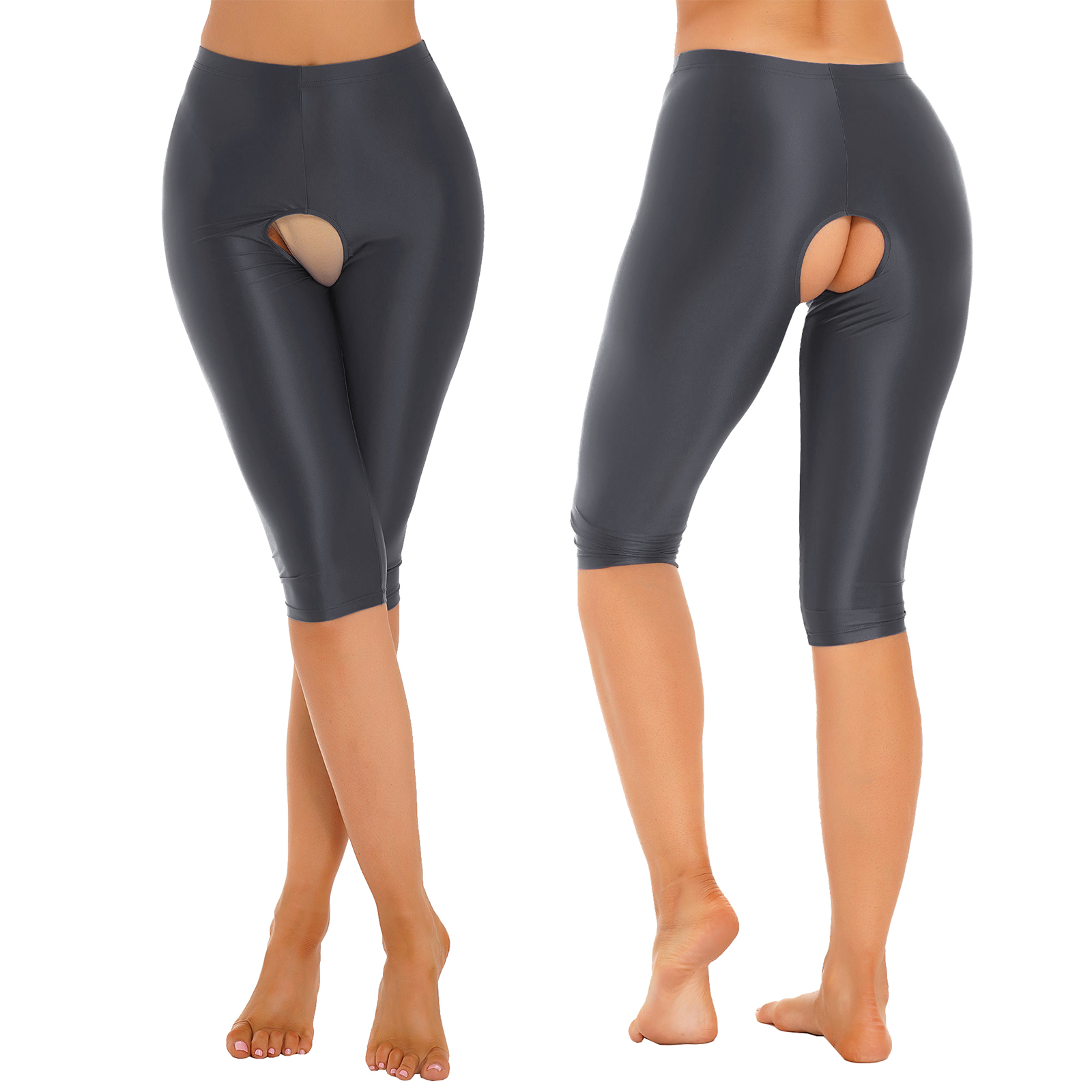 Women Sexy Glossy Crotchless Shorts Rave Party Nightclub Hot Pants Stretchy Smoo